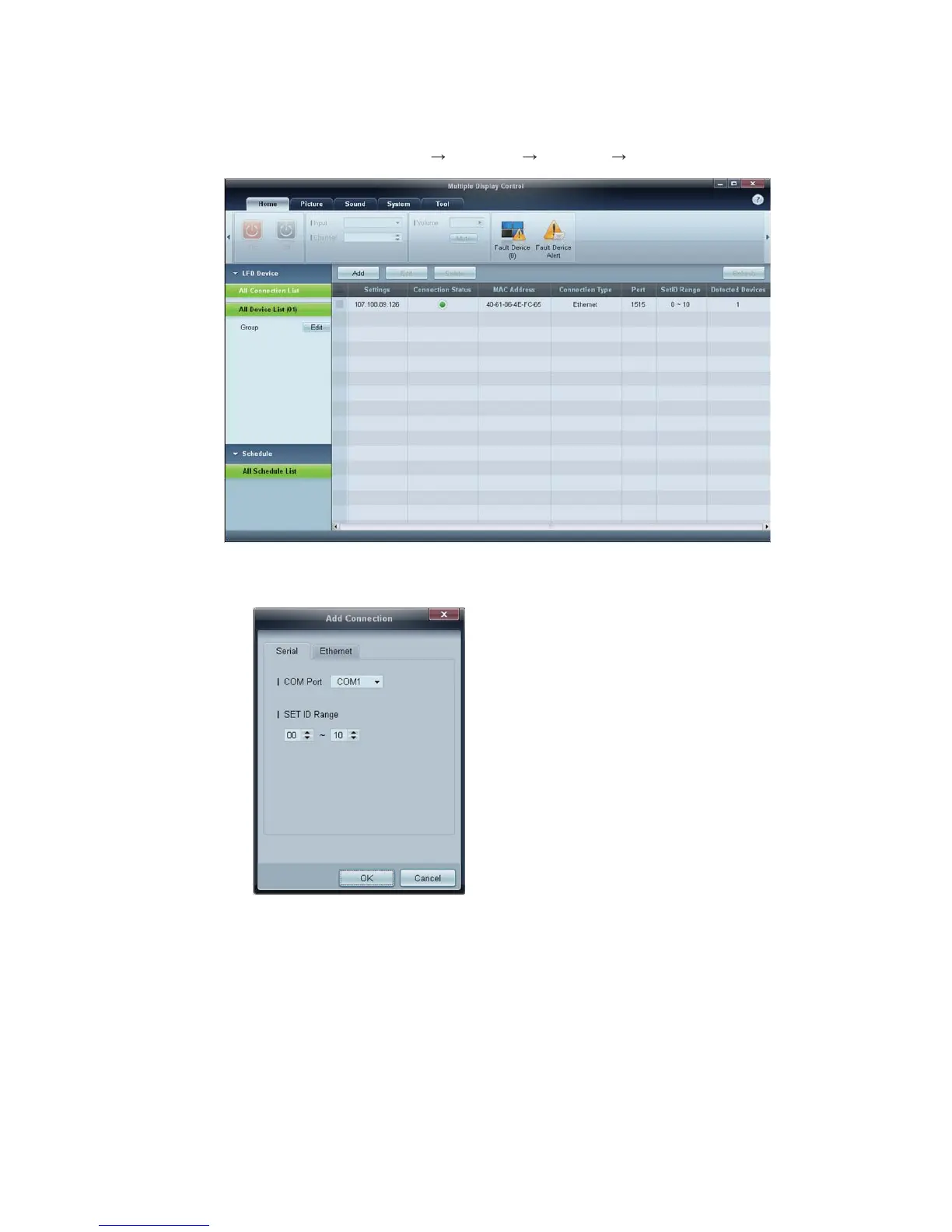 z If the connection is established via RS232C, go to Serial and specify the COM Port.