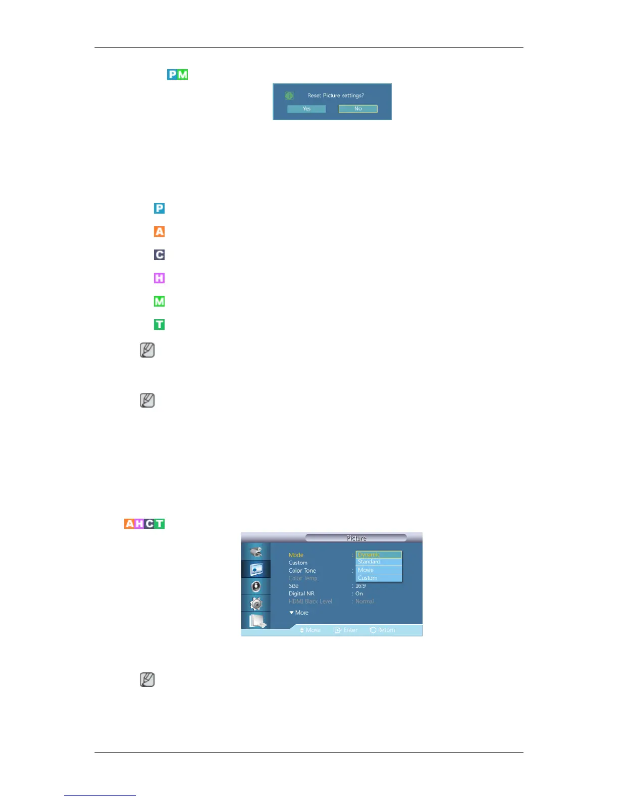 The LCD Display has four automatic picture settings ("Dynamic", "Standard", "Movie" and "Cus-