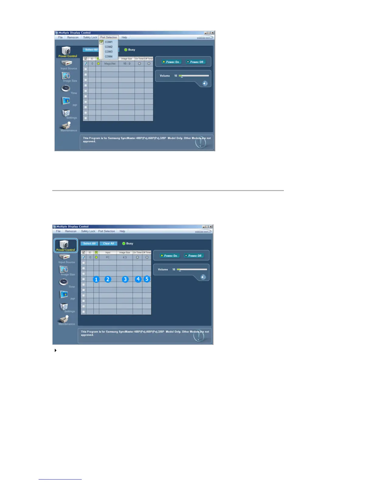 2. If any port other than COM1 is used, COM1 to COM4 can be selected in the Port Selection Menu.