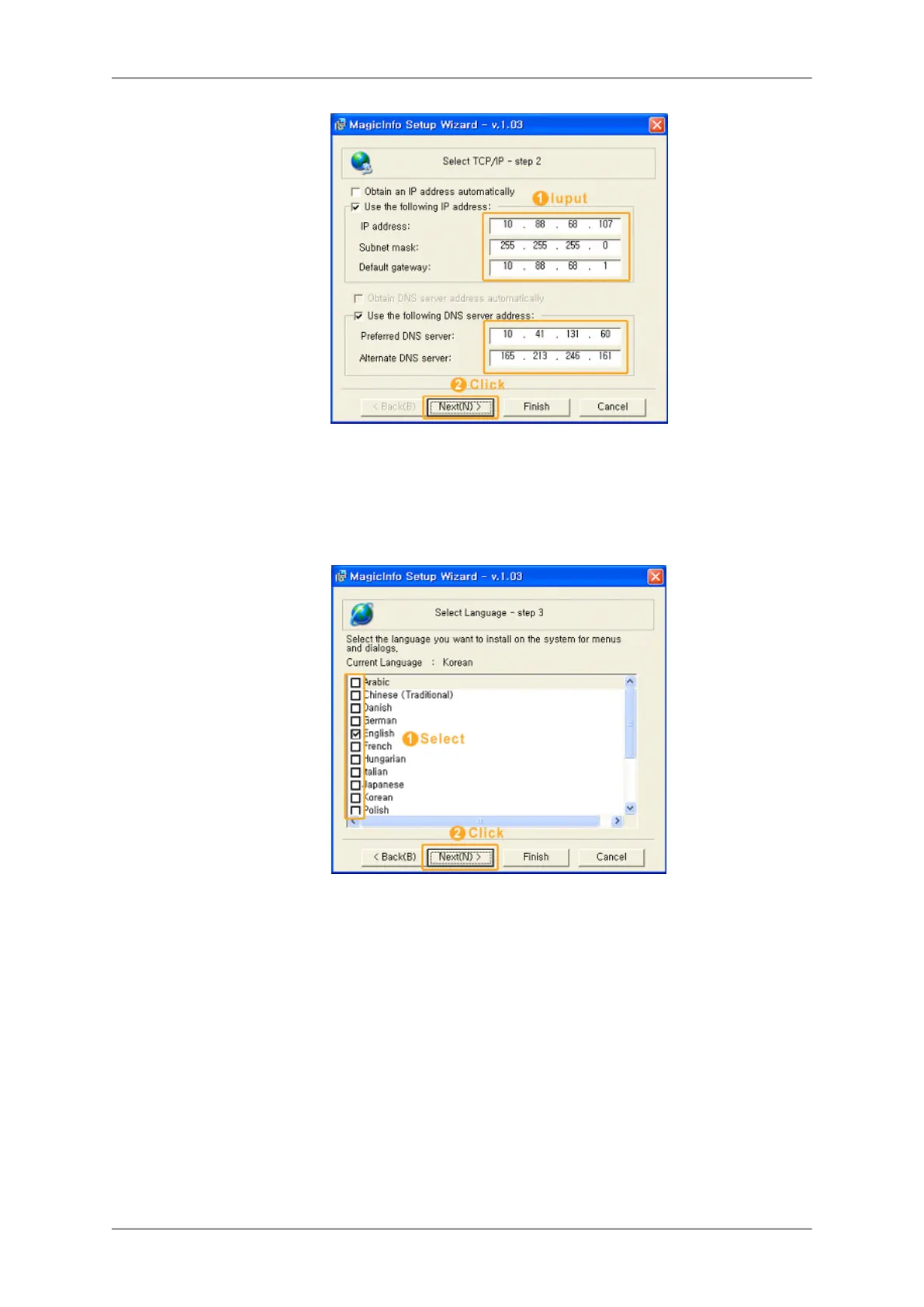 desktop to make your settings for TCP/IP. You just do that at step 2 of MagicInfo in-