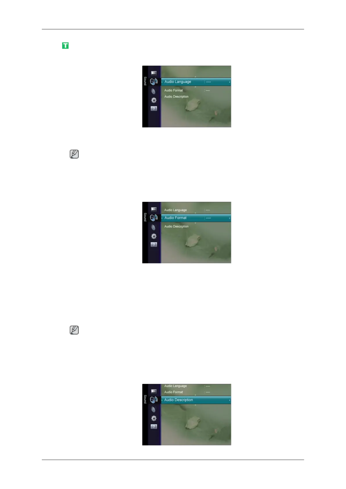The Audio Format appears according to the broadcasting signal.