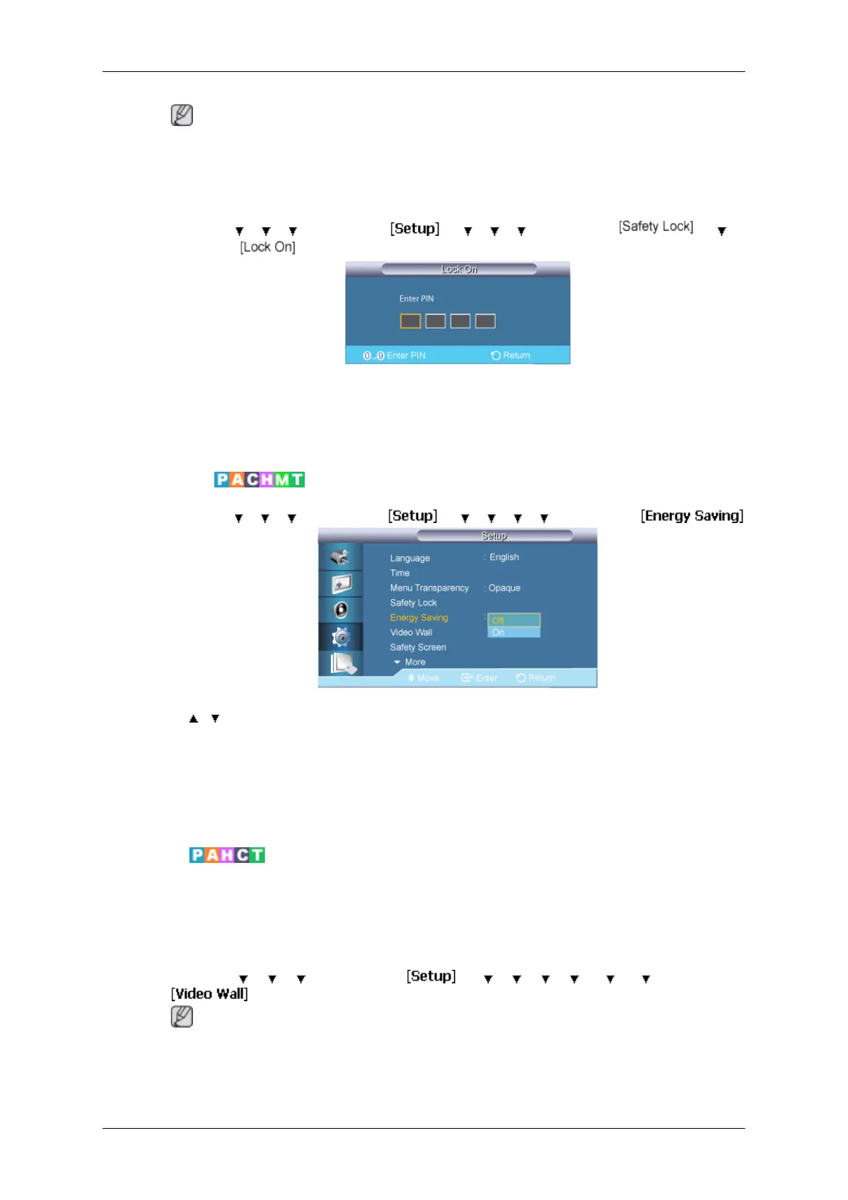 When Video Wall is running, the Auto Adjustment, Image Lock, and Size functions are