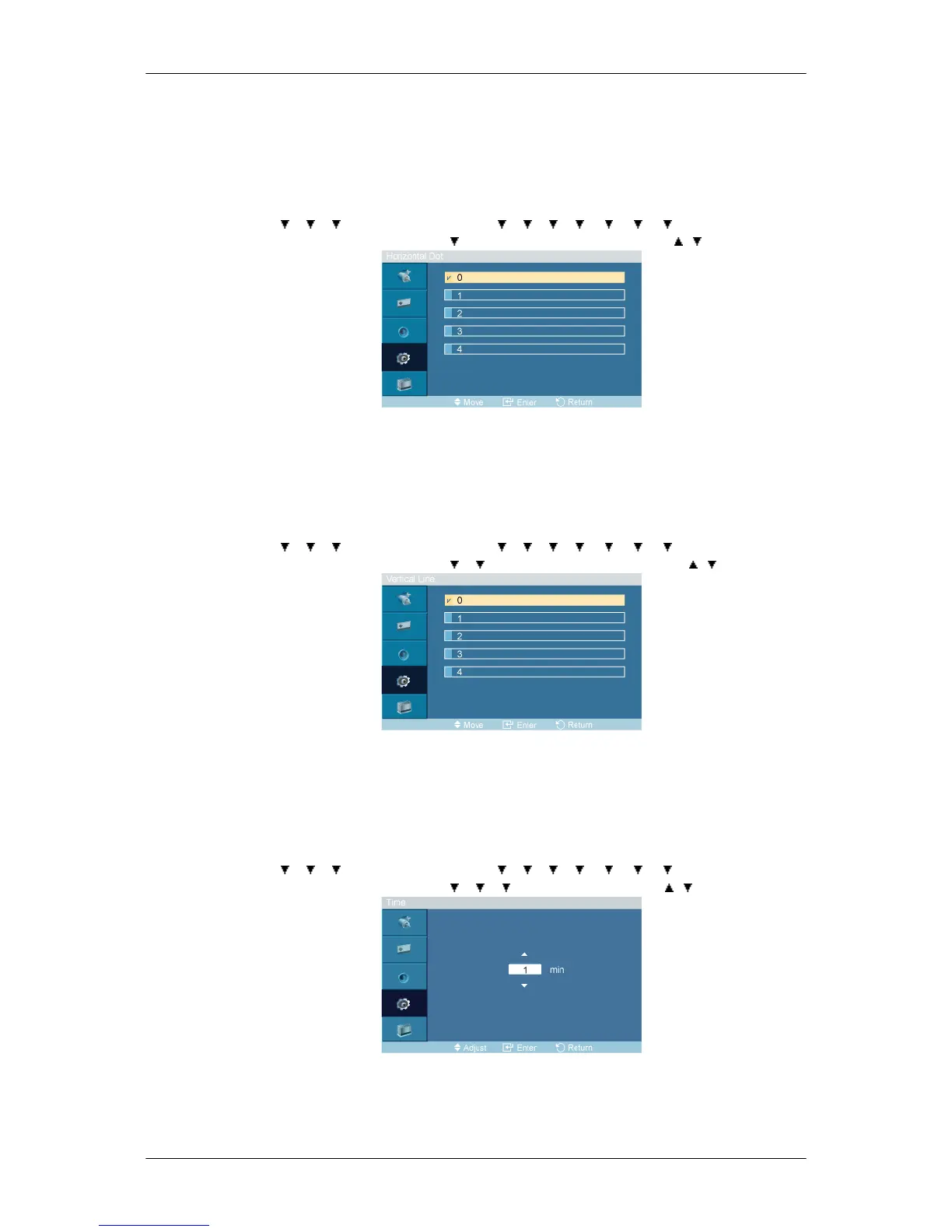 Screen] → ENTER → [Pixel Shift] → → → → ENTER → [Time] → , → ENTER