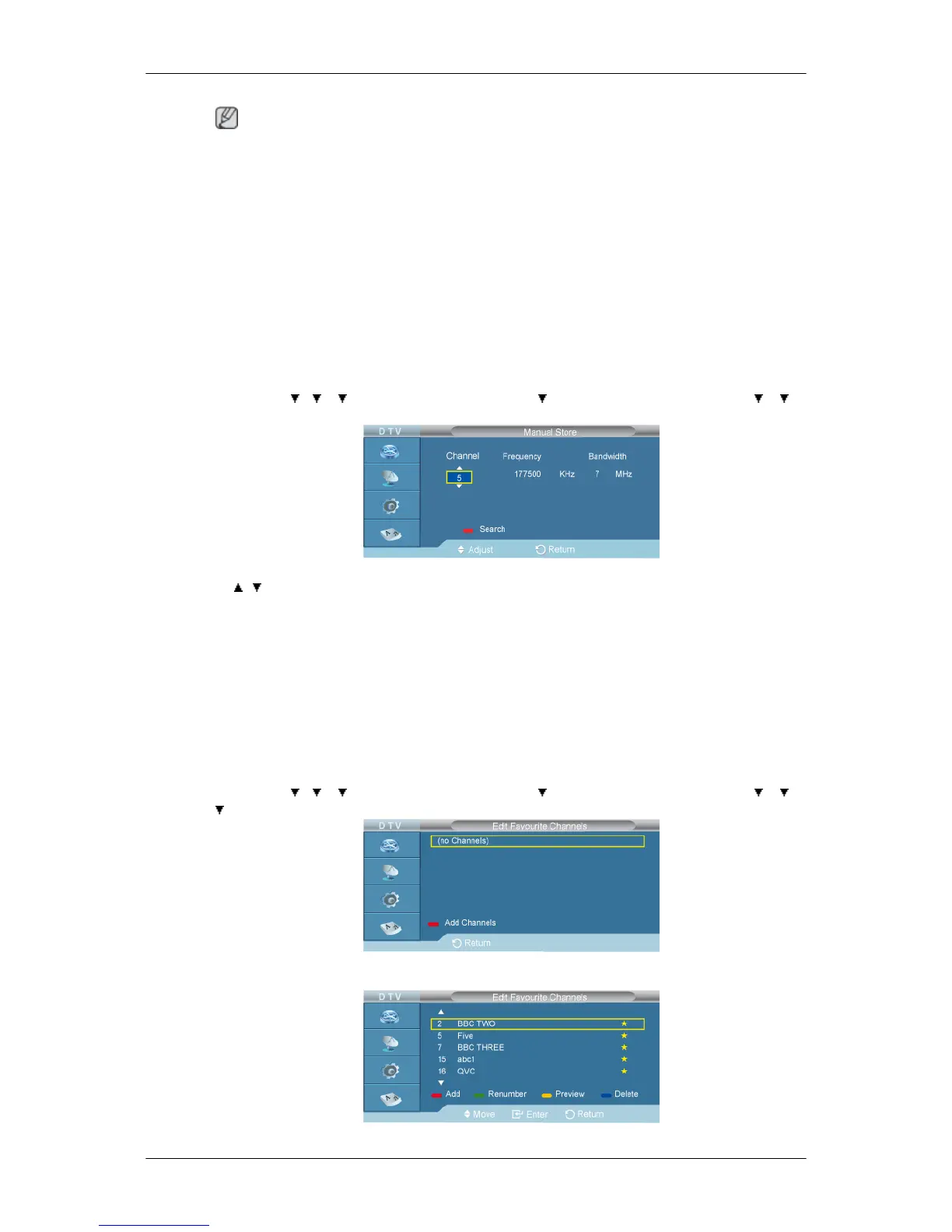 • The existing favourite channel list will not be deleted when the channel list is updated.