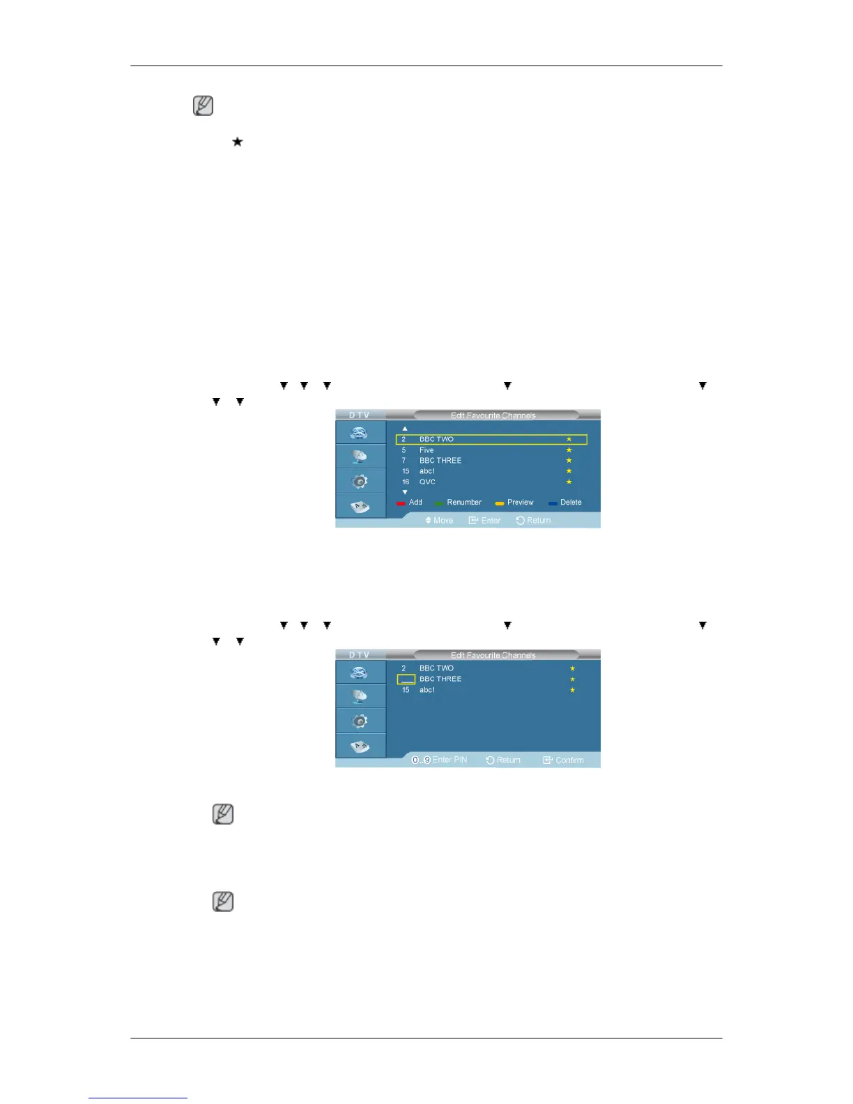 • A " " icon is shown next to the selected channel and the channel will be added to the favourite