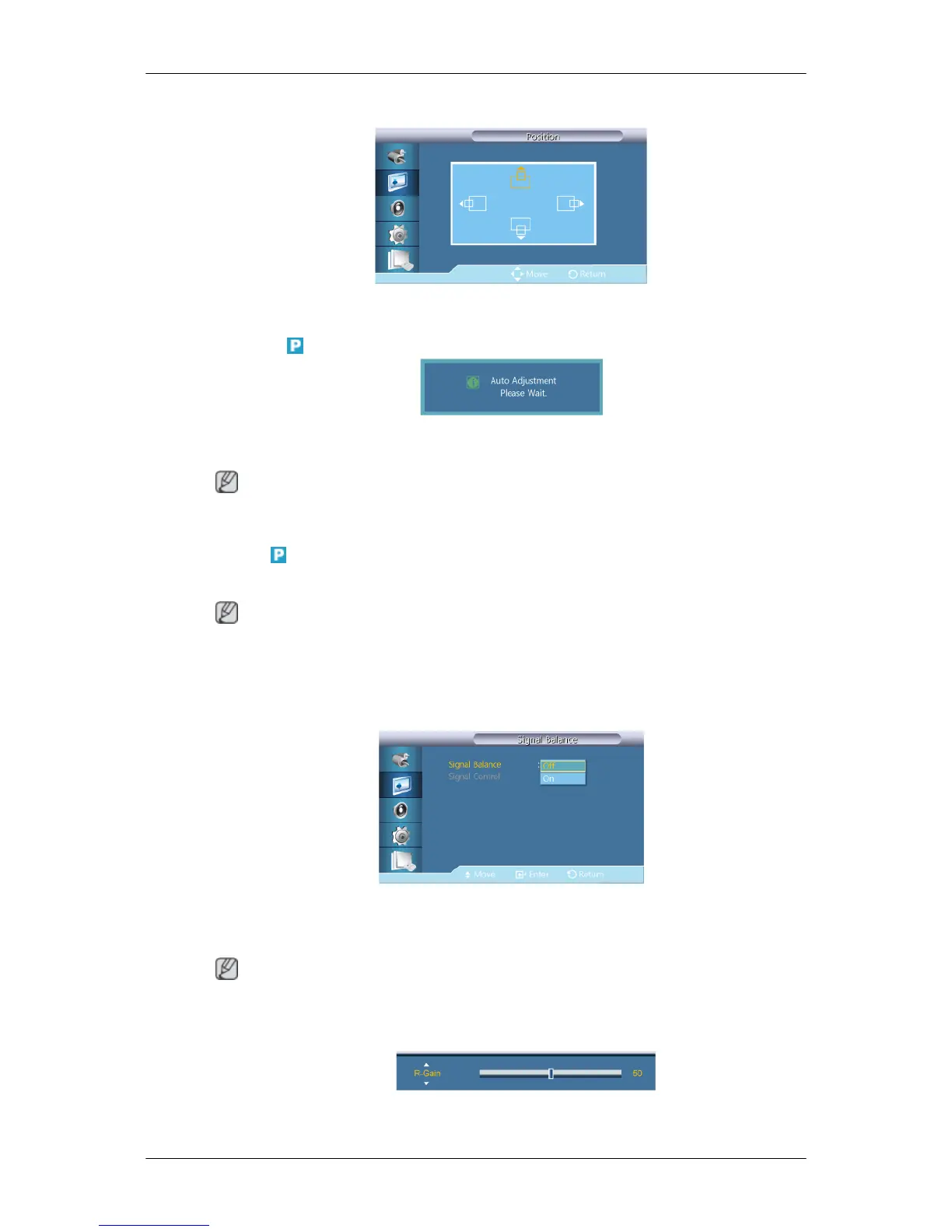 Adjusts the screen location horizontally and vertically.