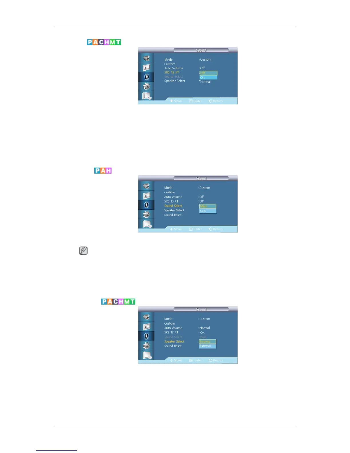 When you use the product with it connecting to a Home theater, turn the Internal speakers