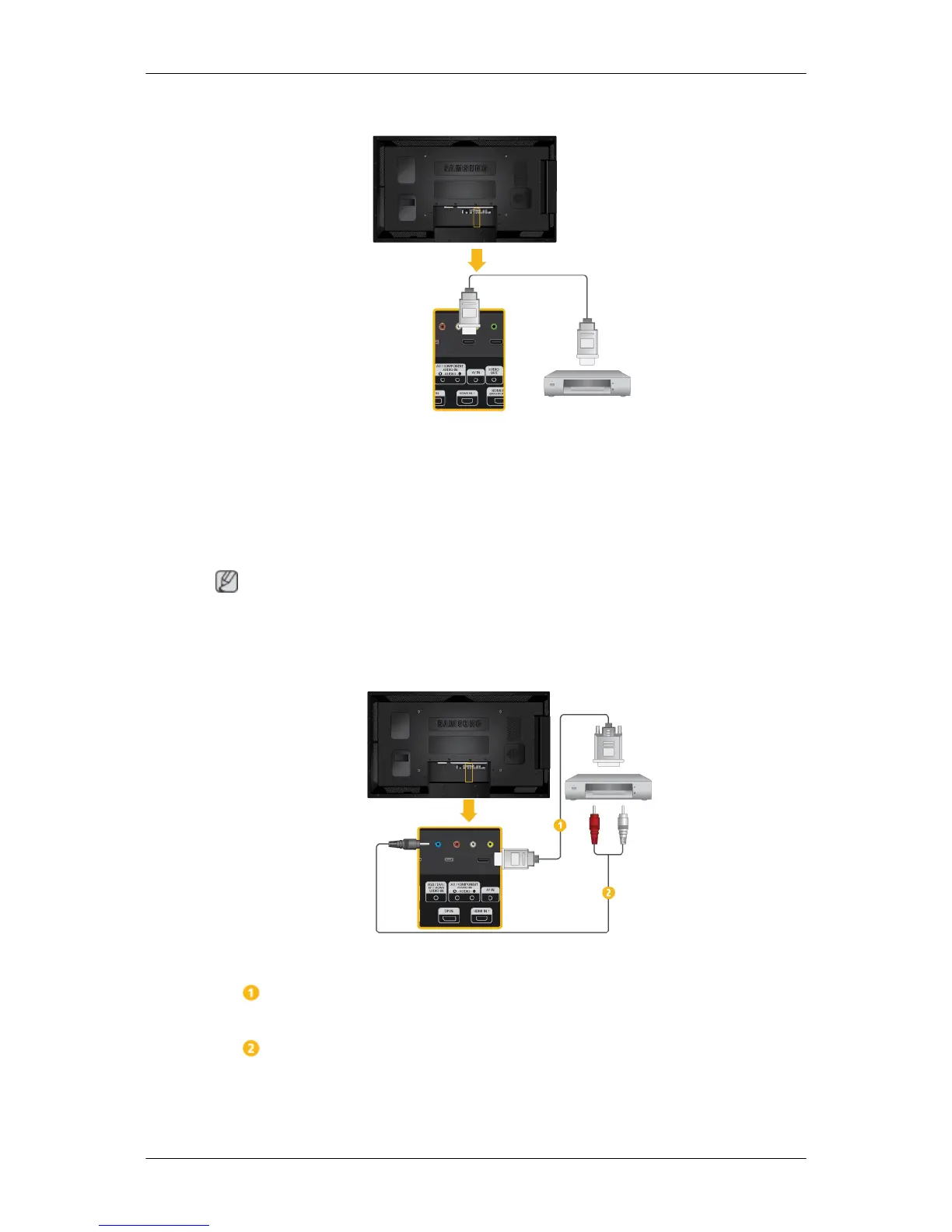 Connect a DVI-HDMI cable to [HDMI IN 2 (MAGICINFO)] or [HDMI IN 1]