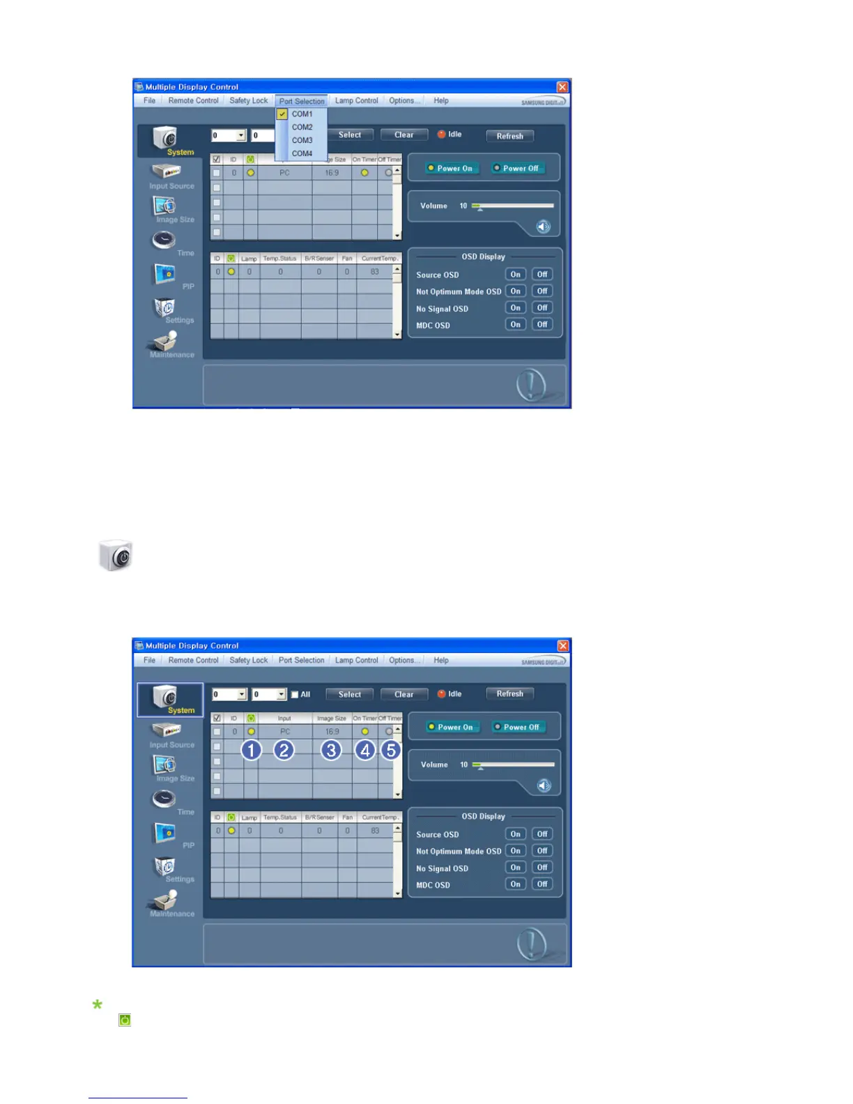 1. The Multiple Display Control is originally set to COM1.