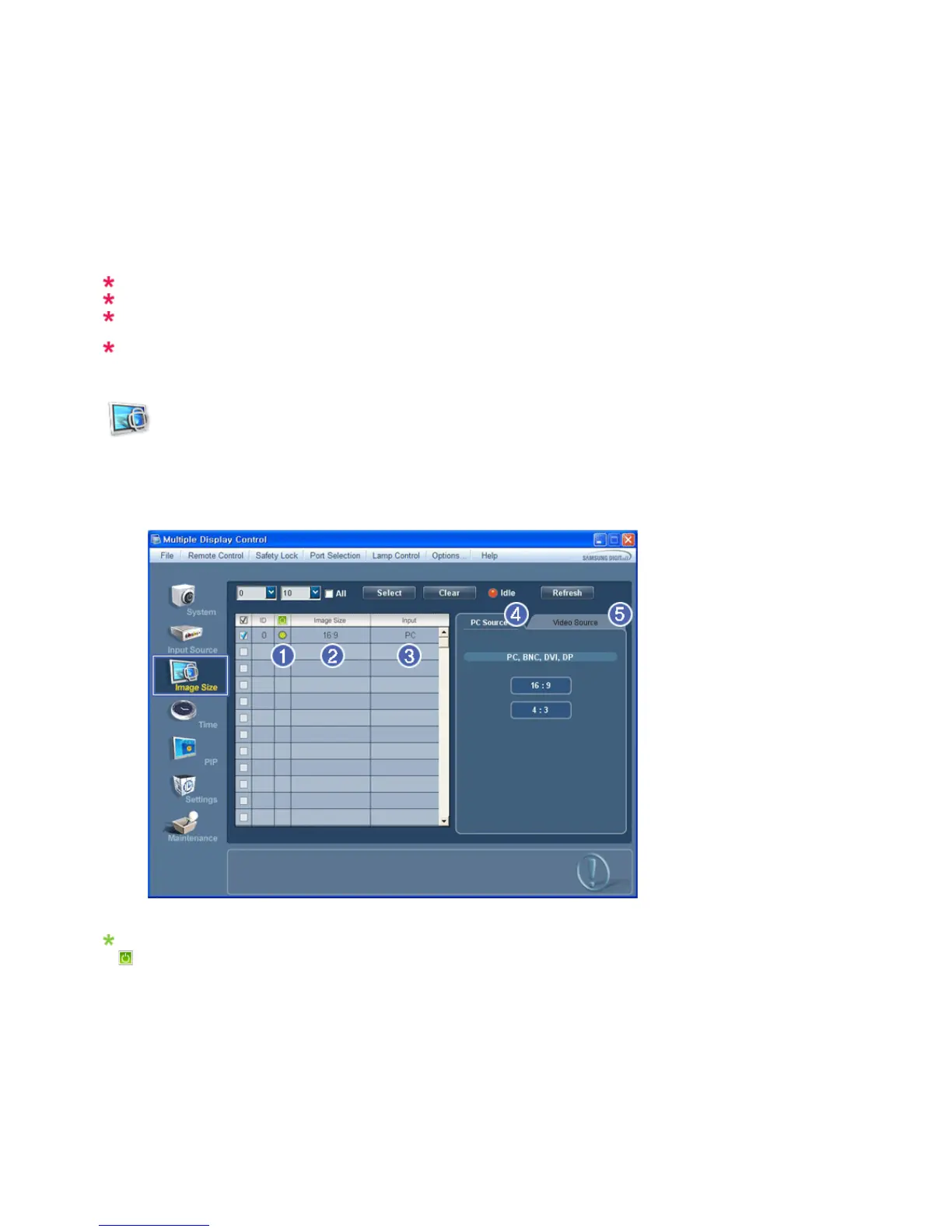 - Info Grid displays only the displays whose Input Source is PC, BNC, DVI and DP.
