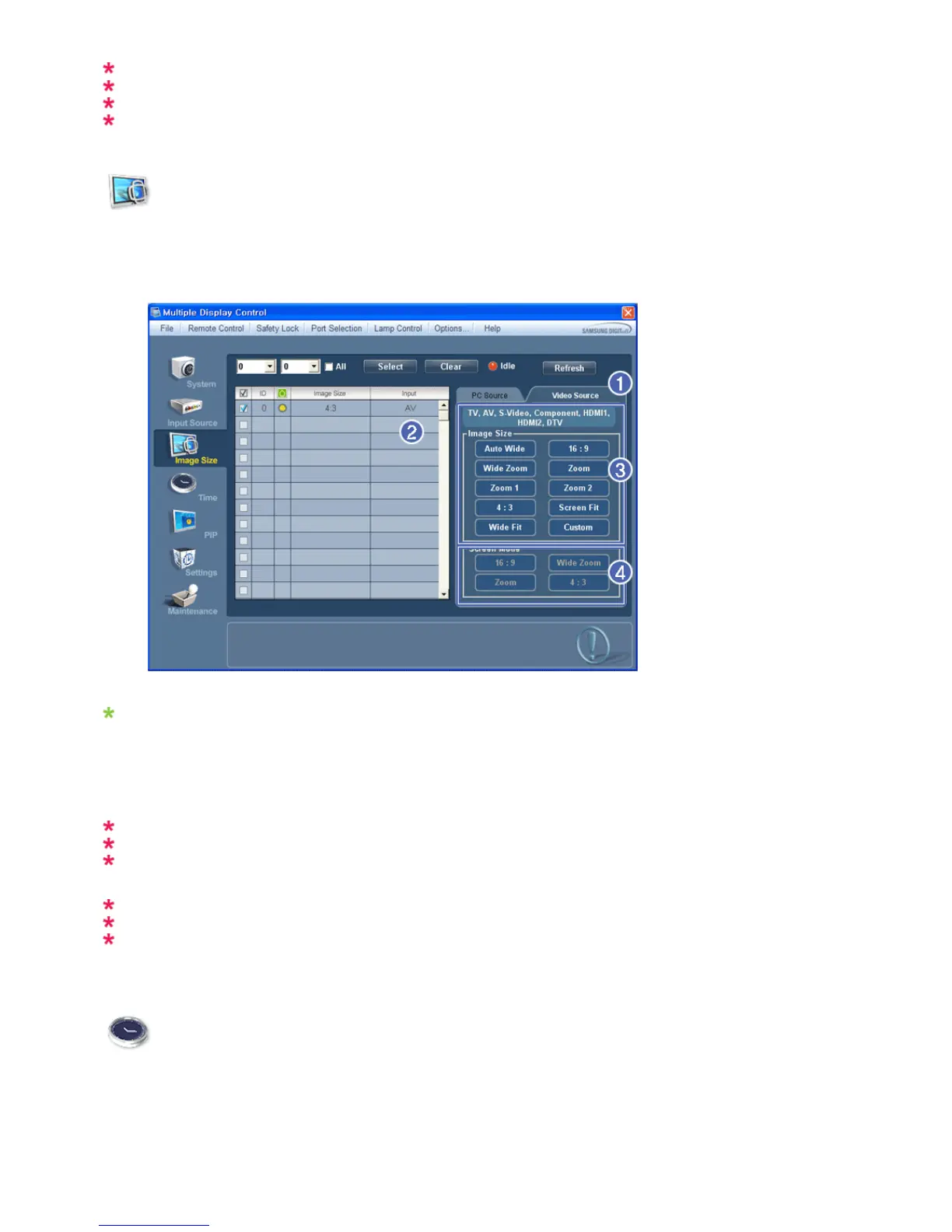 The Image Size Control feature is available only for the displays whose power status is ON.