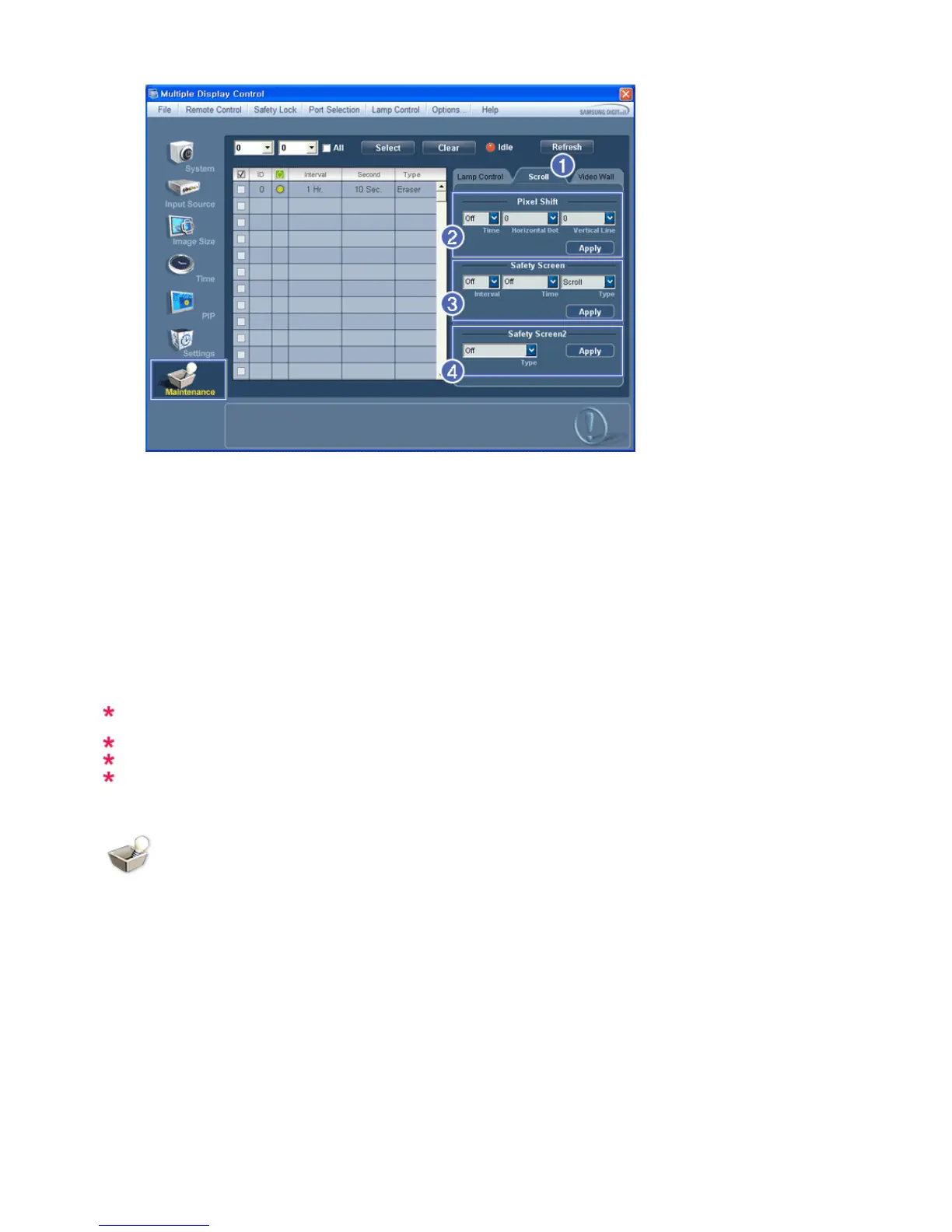 The Maintenance Control feature is available only for the displays whose power status is ON.