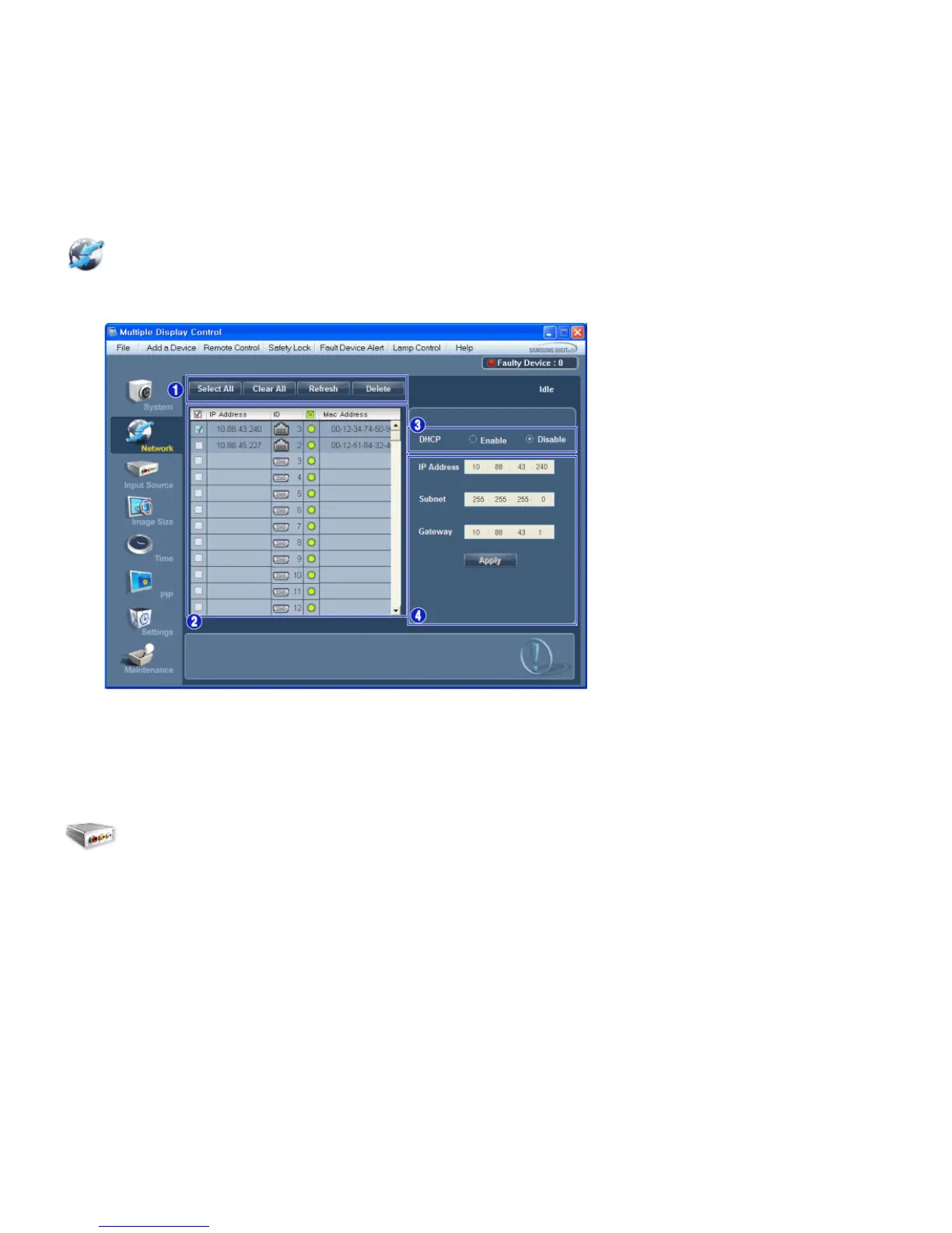 4) It can automatically or manually set and then apply the IP Address, Subnet and Gateway of the selected monitor.