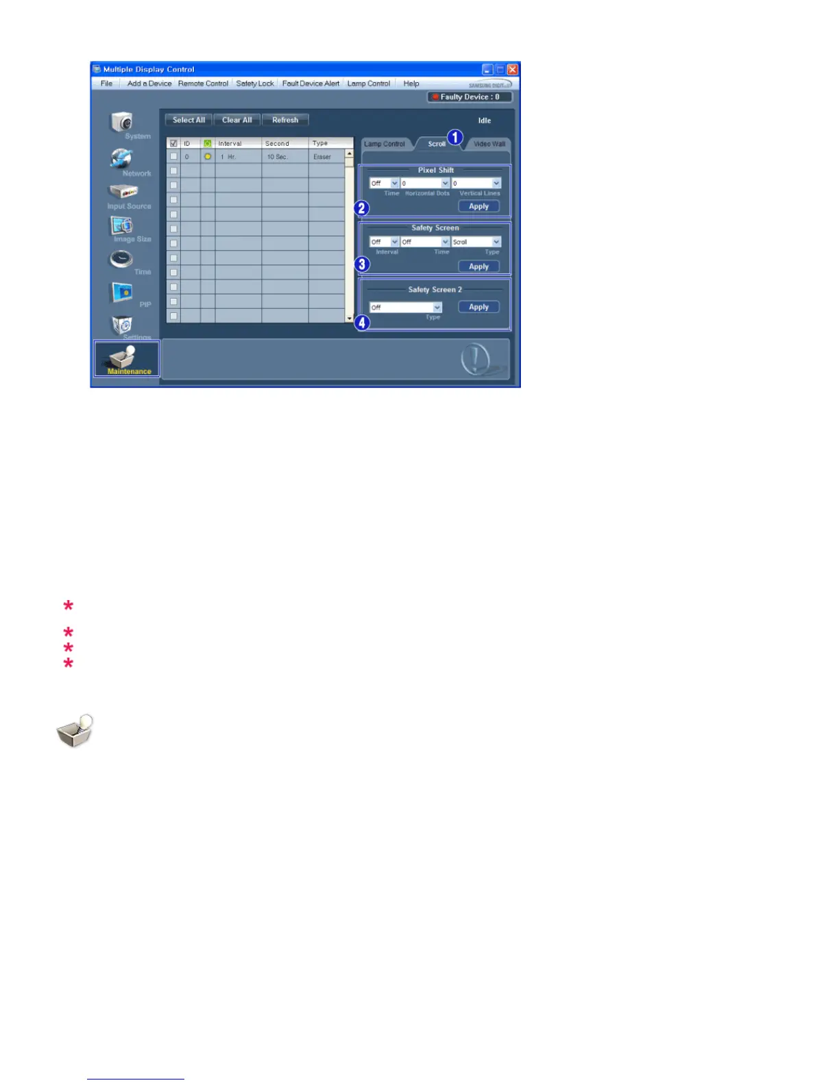 The Maintenance Control feature is available only for the displays whose power status is ON.