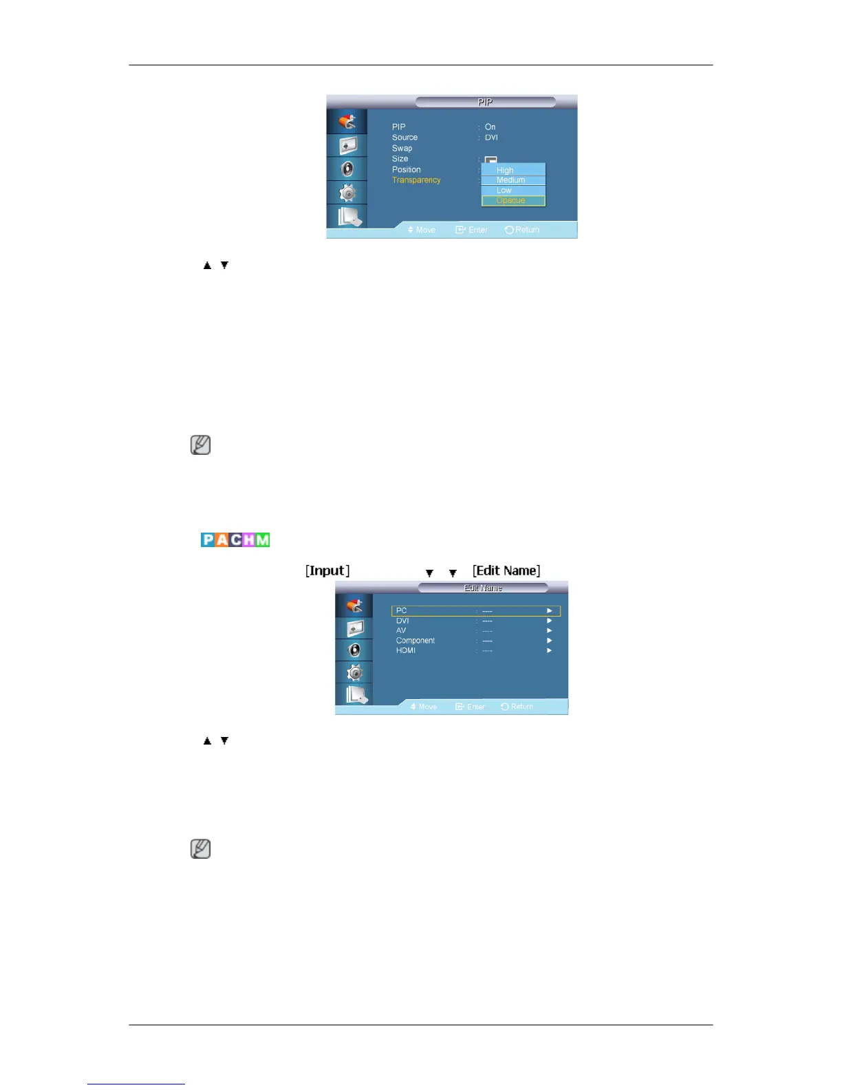 When connecting a PC to the HDMI or DVI terminal, set Edit Name to PC. In other cases,