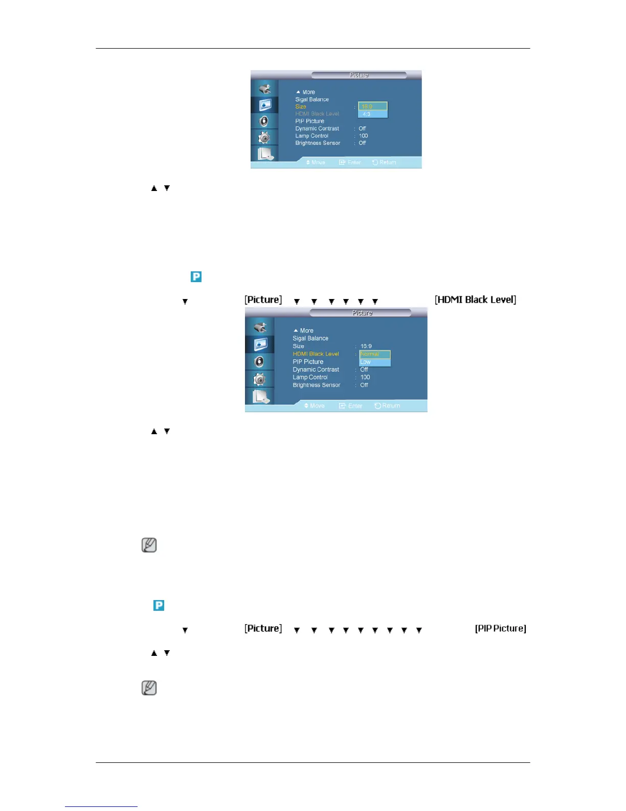 Adjusts the PIP Screen Settings.