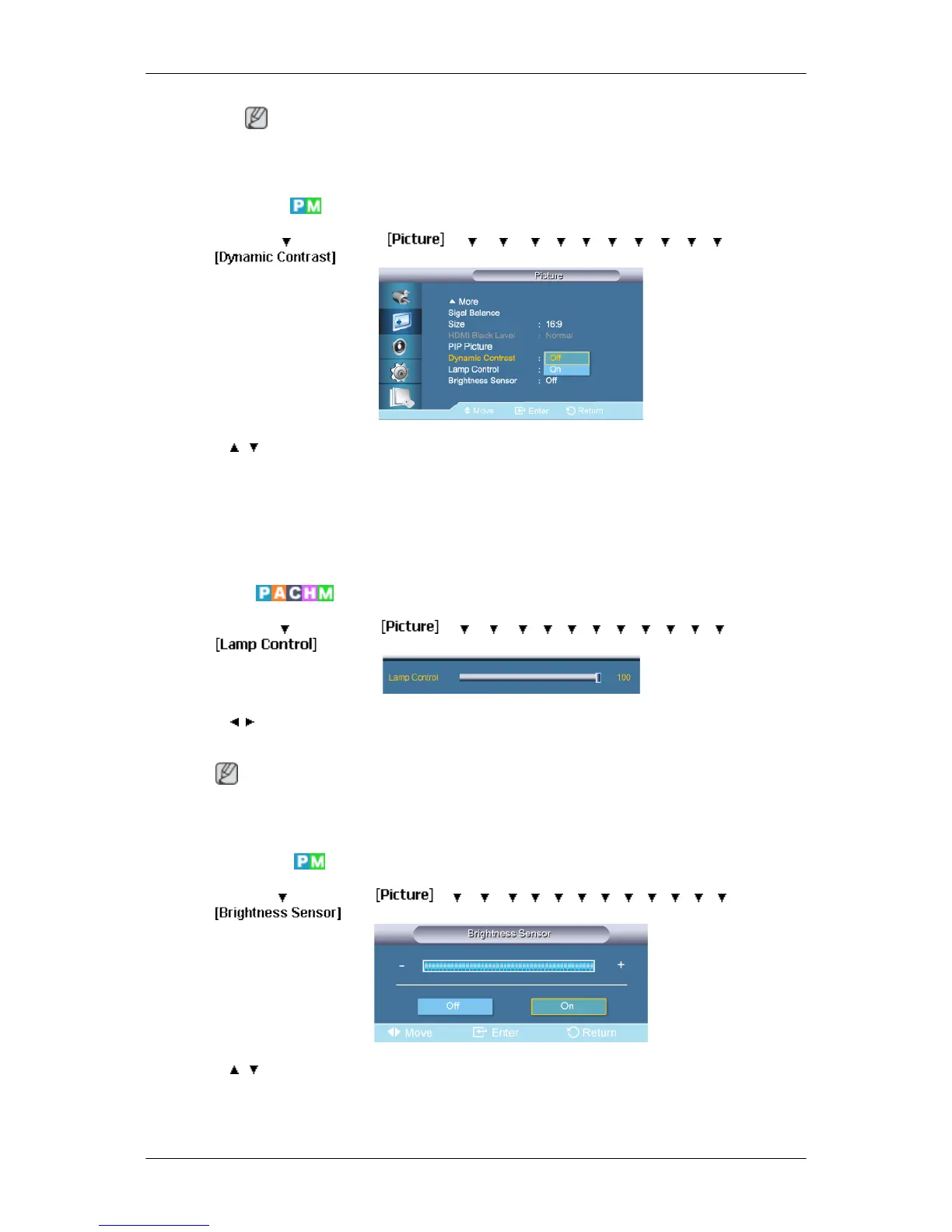 does not operate when Dynamic Contrast is set to On in PC, DVI, AV, HDMI,