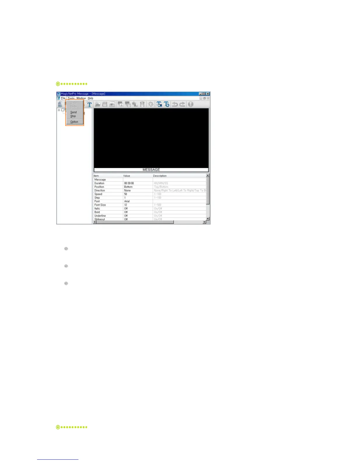 Checks the edited message data in a tree view and sends (or stops) them to the selected