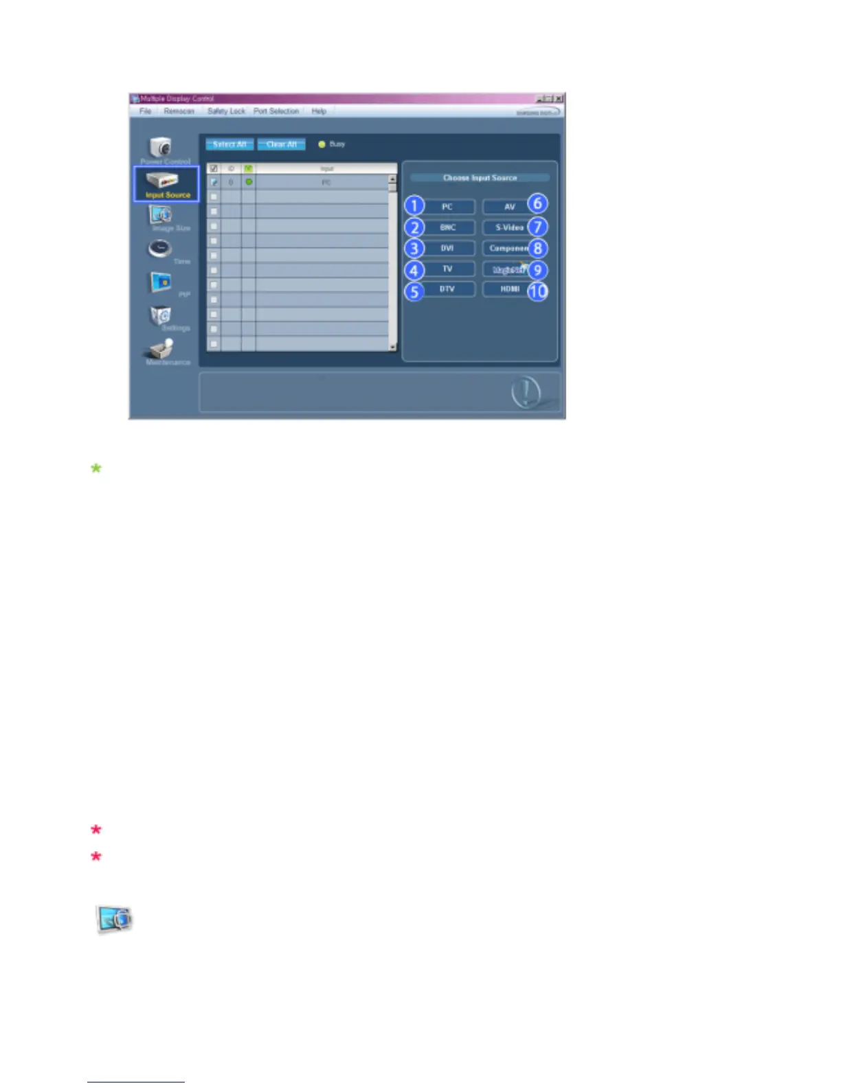 The Input Source Control feature is available only for the displays whose power status is ON.