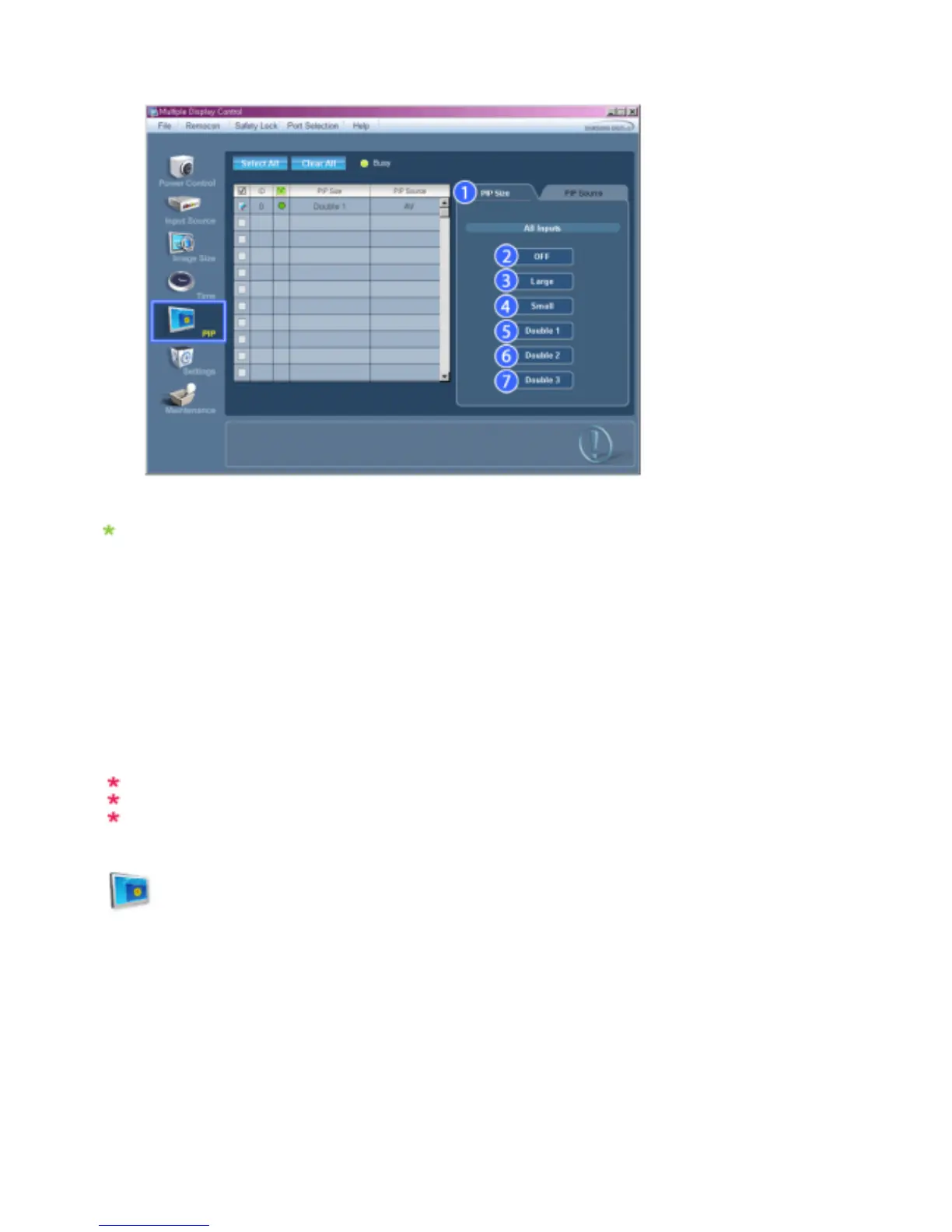 - Shows the current PIP Size of the display in use.