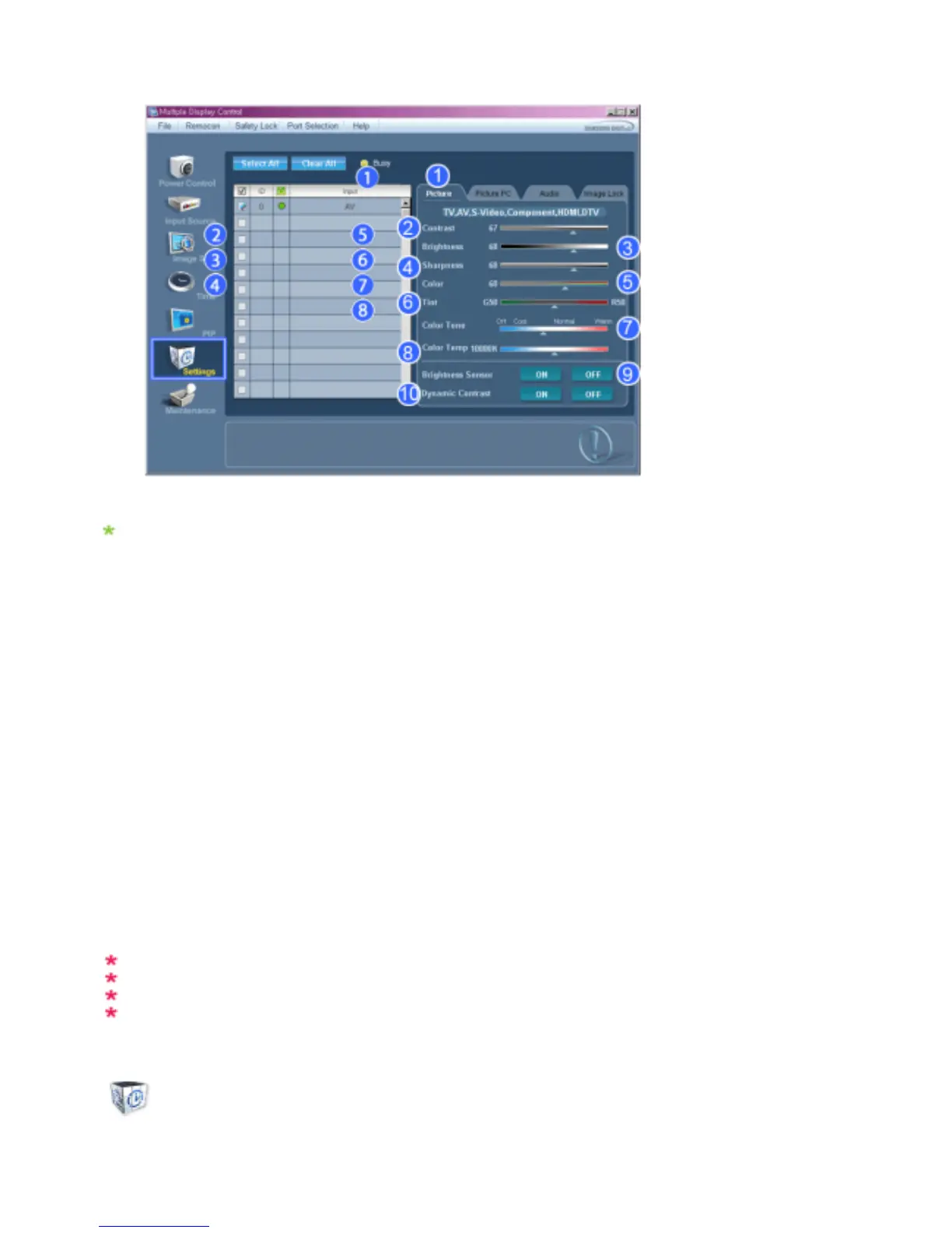 - Adjusts the Brightness Sensor for the selected display.