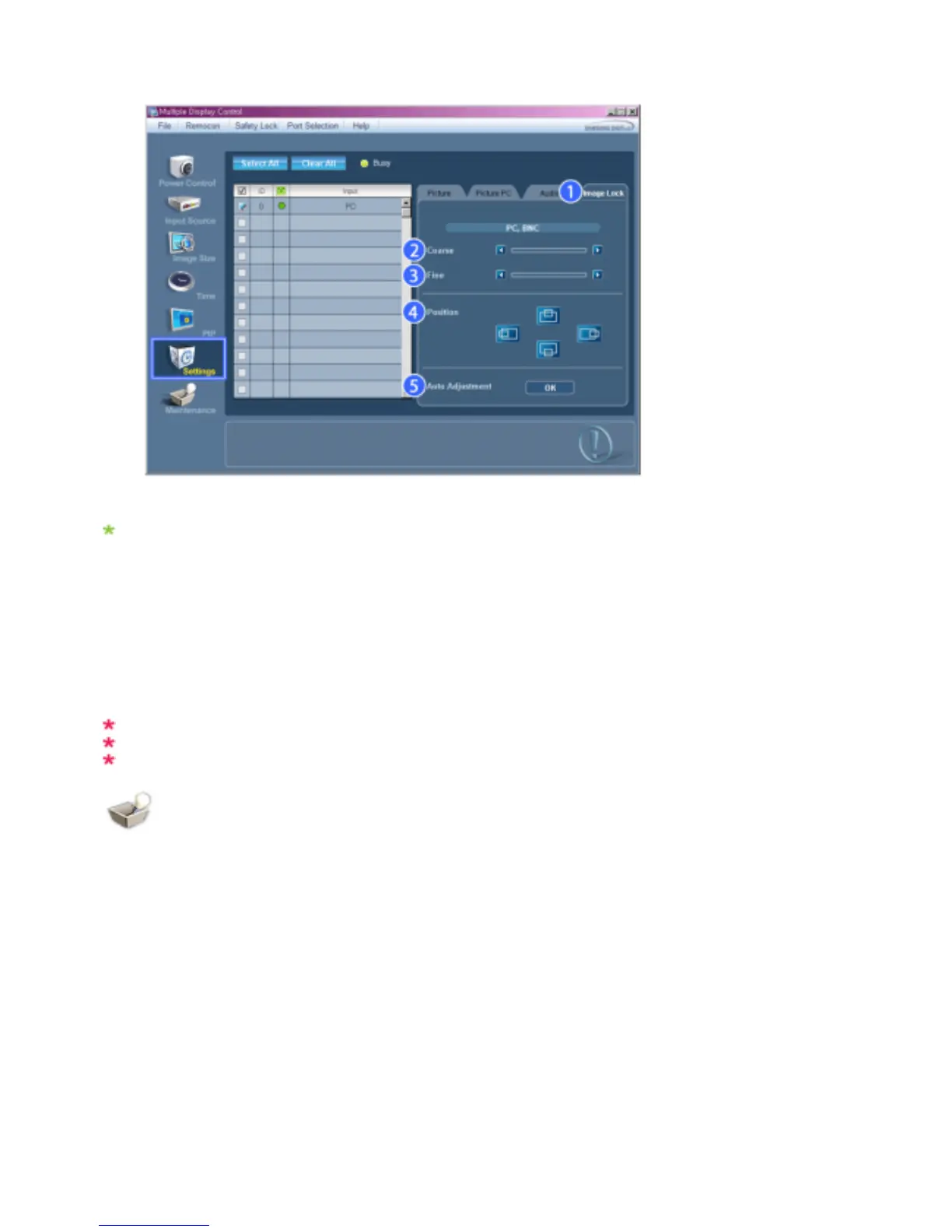 Settings Control is available only for the displays for which the power status is ON.
