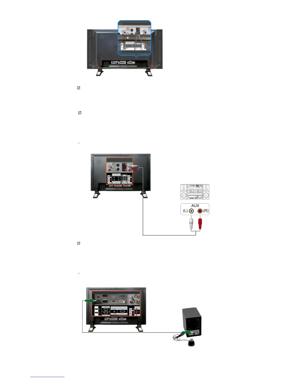 • Connect a set of audio cables between the AUX L, R jacks on the AUDIO SYSTEM and the AUDIO OUT