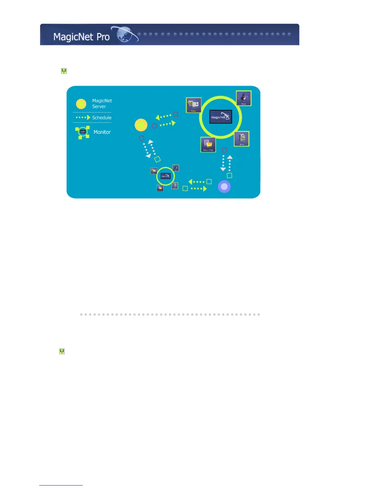 MagicNet uses an Ethernet network for servers and monitors, and transfers media files (image files,