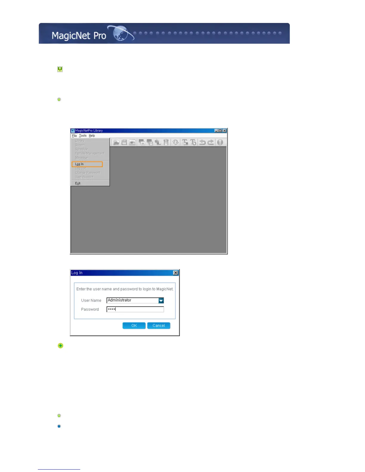 2. When MagicNetPro runs, select Log In from the File menu.