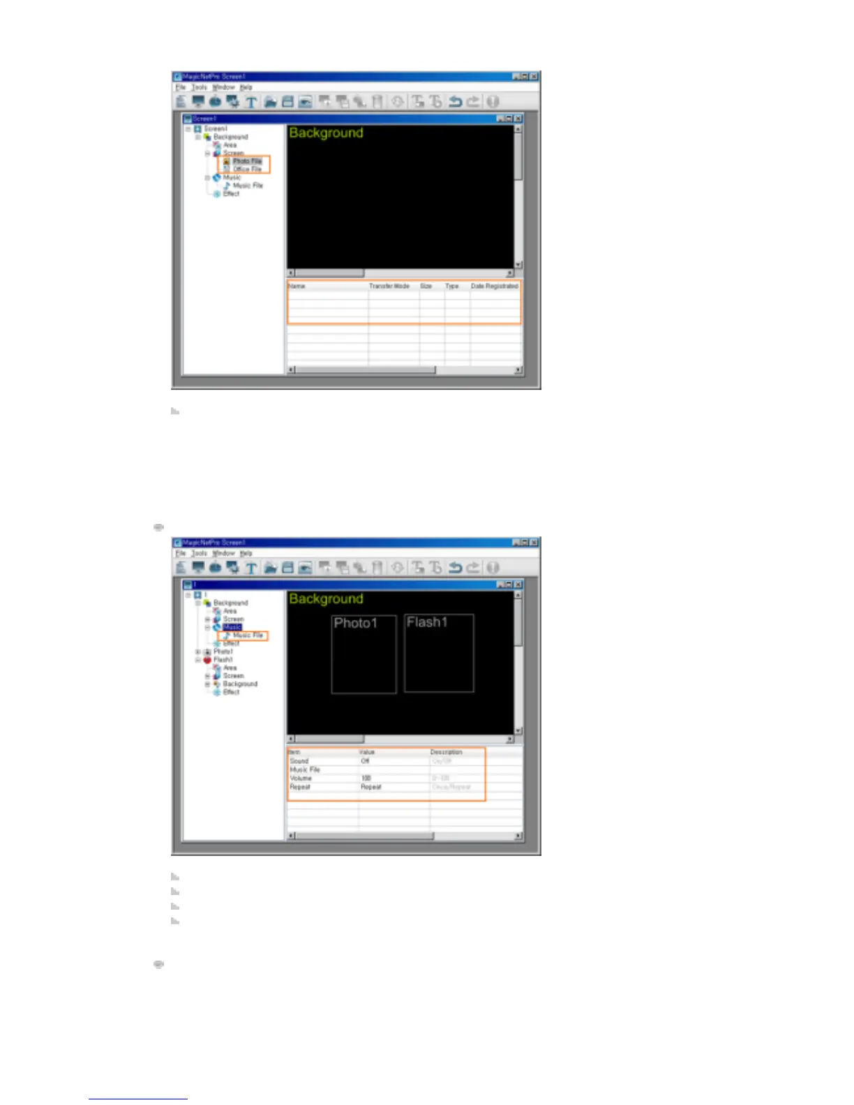 Context Menu: Add, Delete, Up, Down: Adds and deletes a file and changes the playing