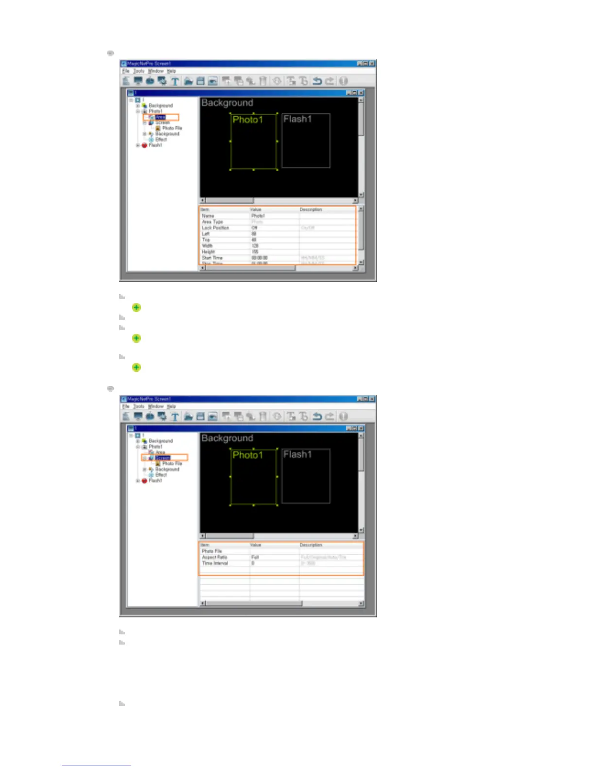 Left, Top, Width, Height: Changes the position and size of the area.