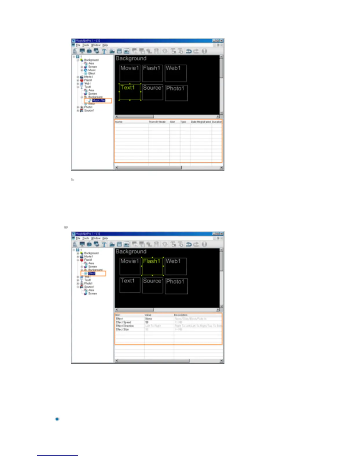 Effect Direction: Sets the direction when the Slide effect is selected.