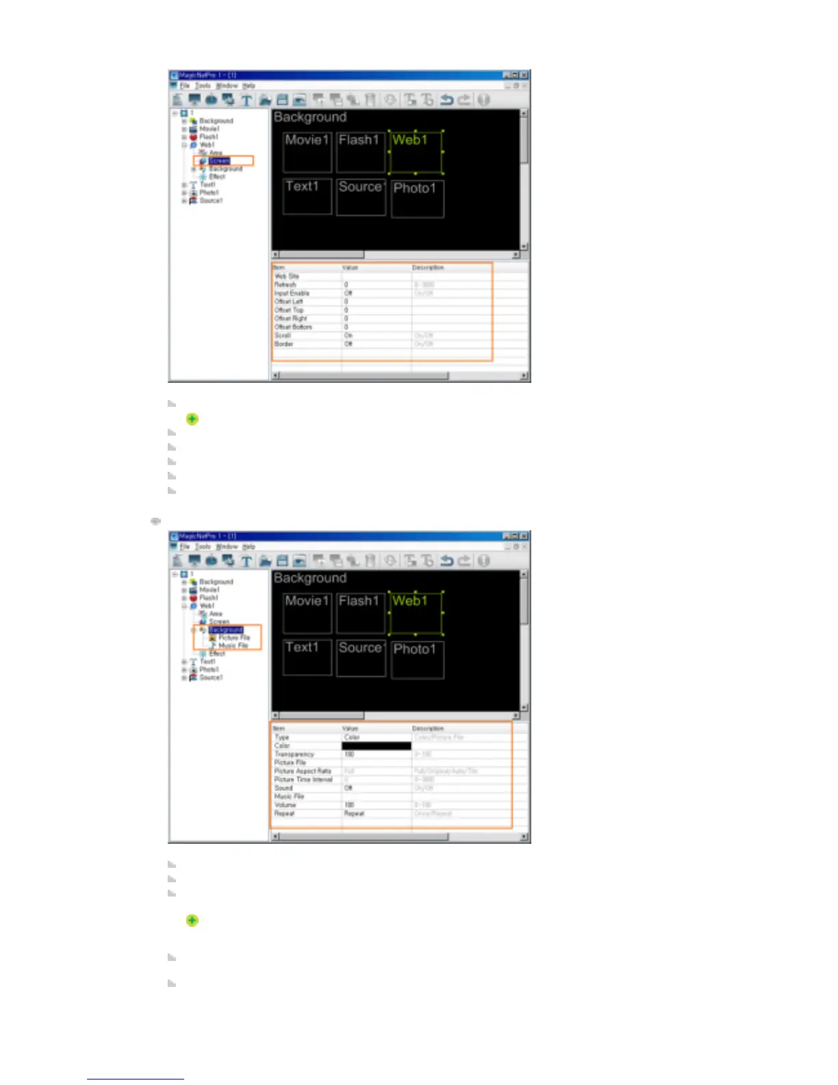 Type: Sets the background type (Color, Picture File) for the Web area.