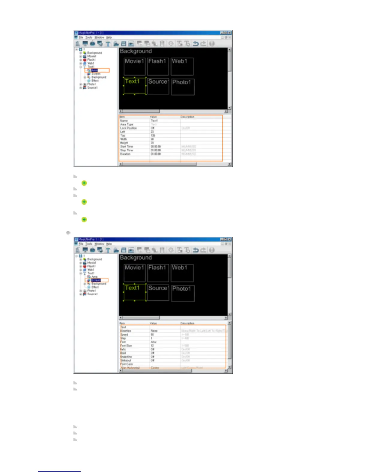 Font, Font Size, Italic, Bold, Underline, Strikeout, Font Color: Sets the formatting for the text in