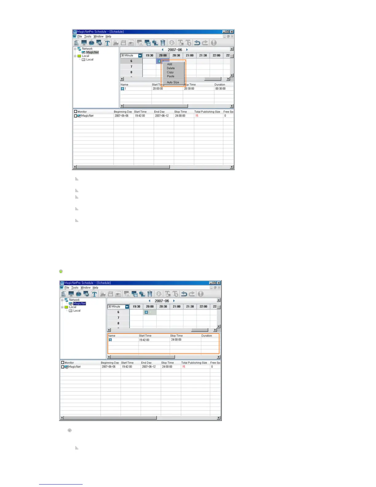 Add: Adds the screen you wish to schedule after selecting a monitor and time by clicking in the