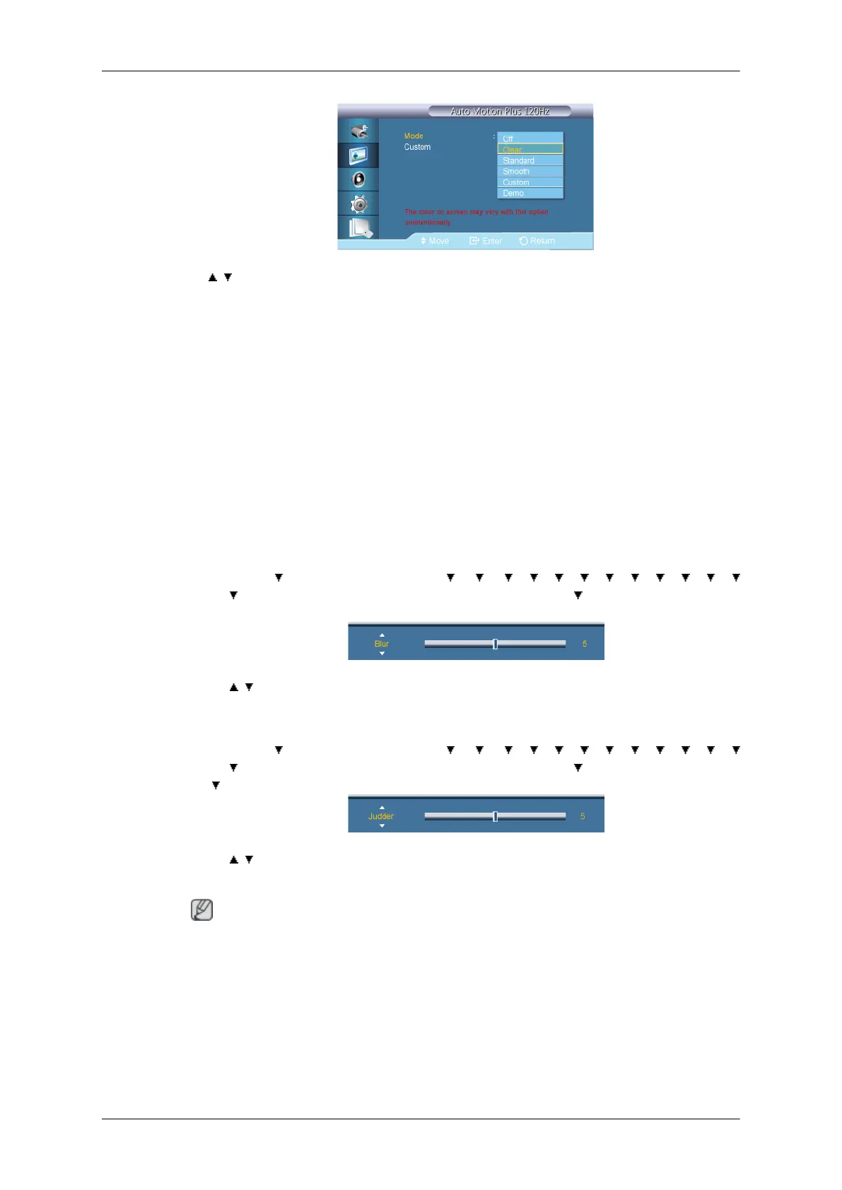 If Auto Motion Plus 120Hz is selected, colors are modified depending on the content.