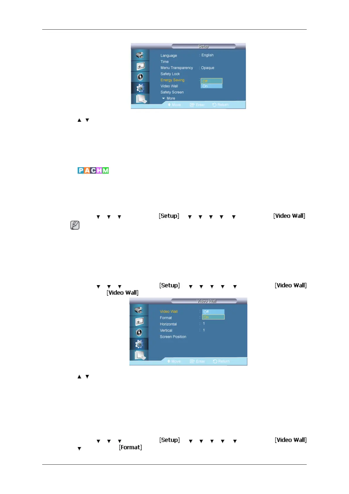 When the Video Wall is on, you can adjust the Video Wall screen setting.