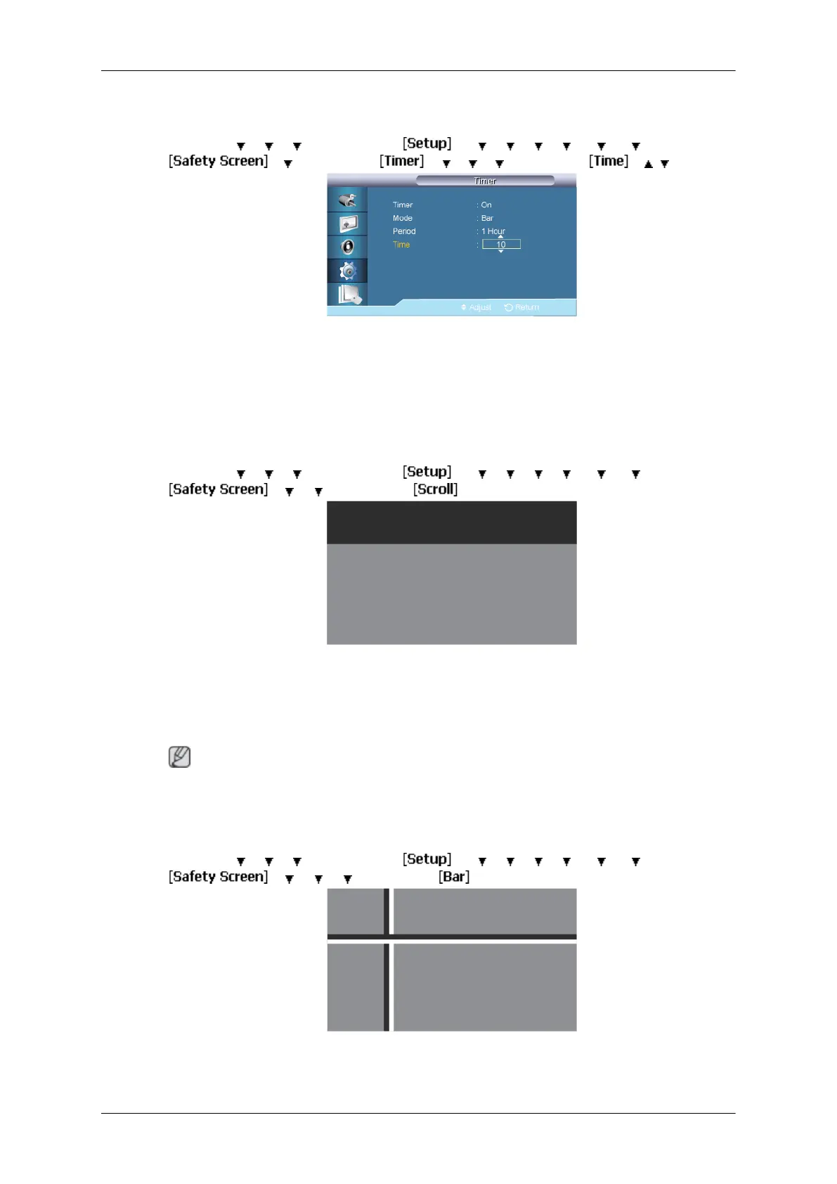 The Safety Screen function scrolls the screen for the specified period of time.