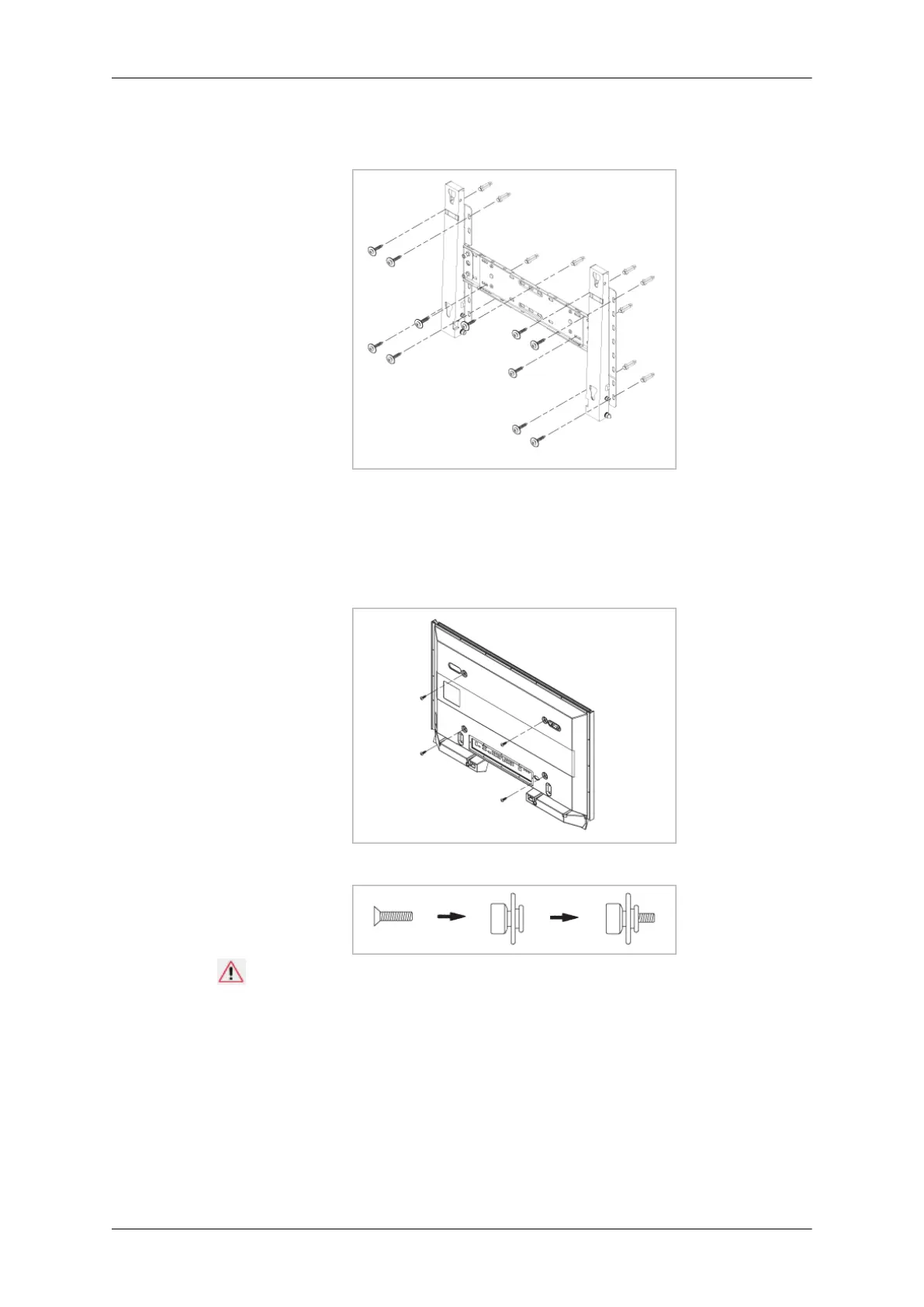 3. Tighten the 4 screws in step 2 (plastic hanger + screw B)to the rear holes of the product.