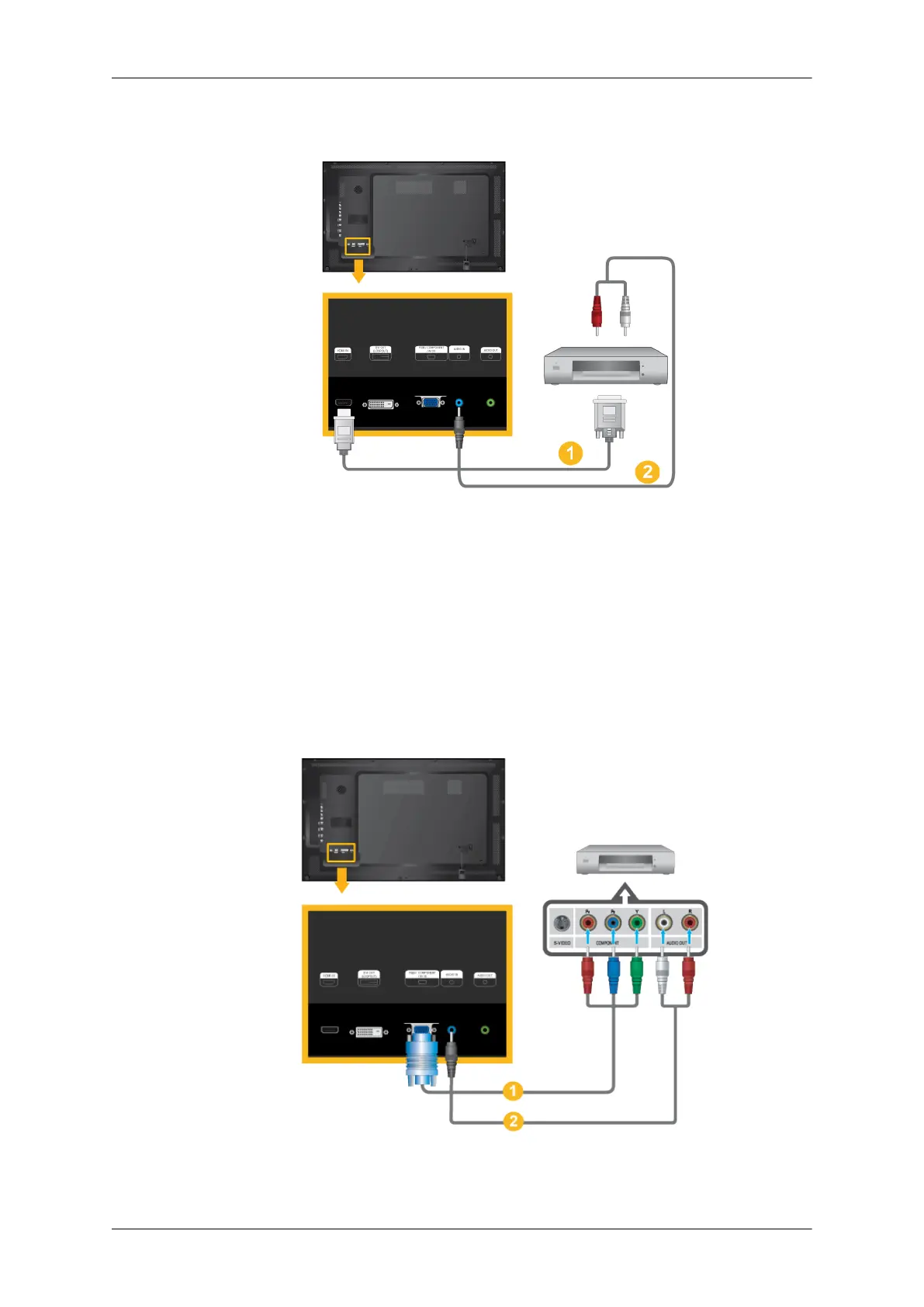 a RGB to Component cable between the [RGB / COMPONENT / AV IN] port
