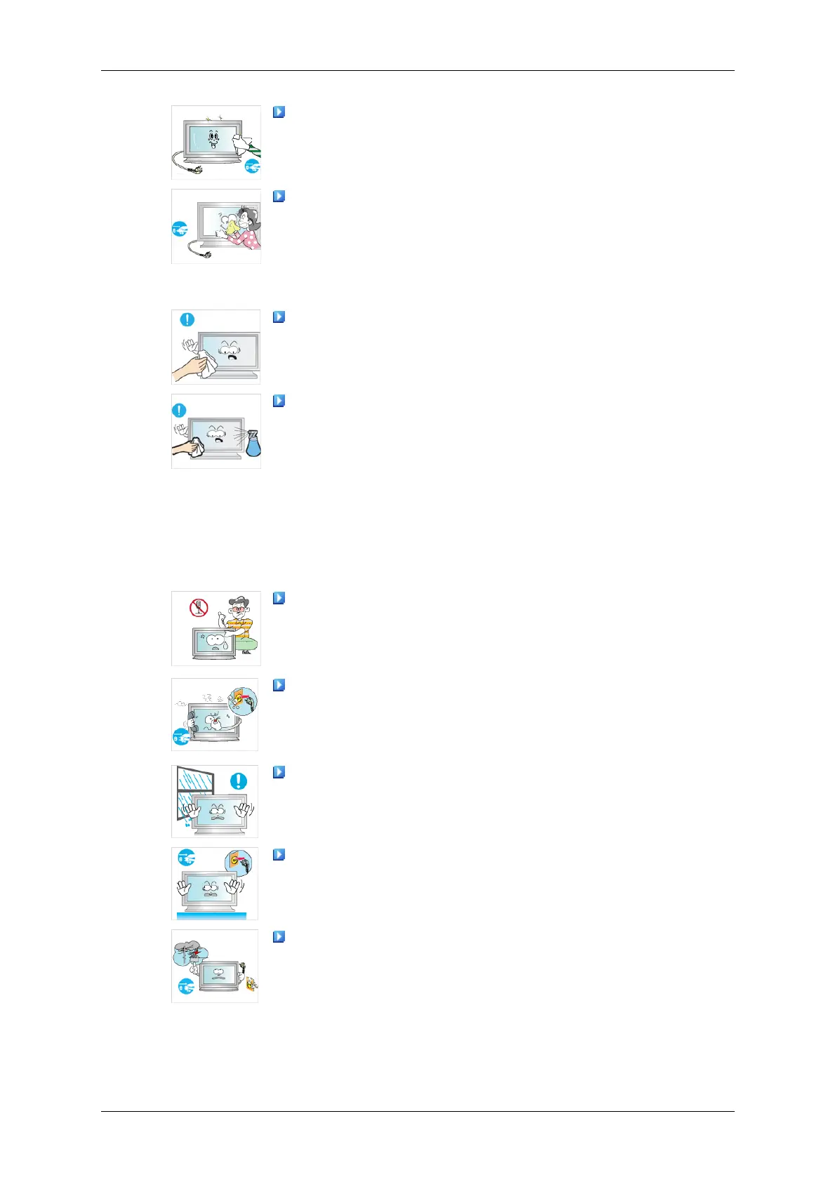 When cleaning the product, do not spray water directly onto the