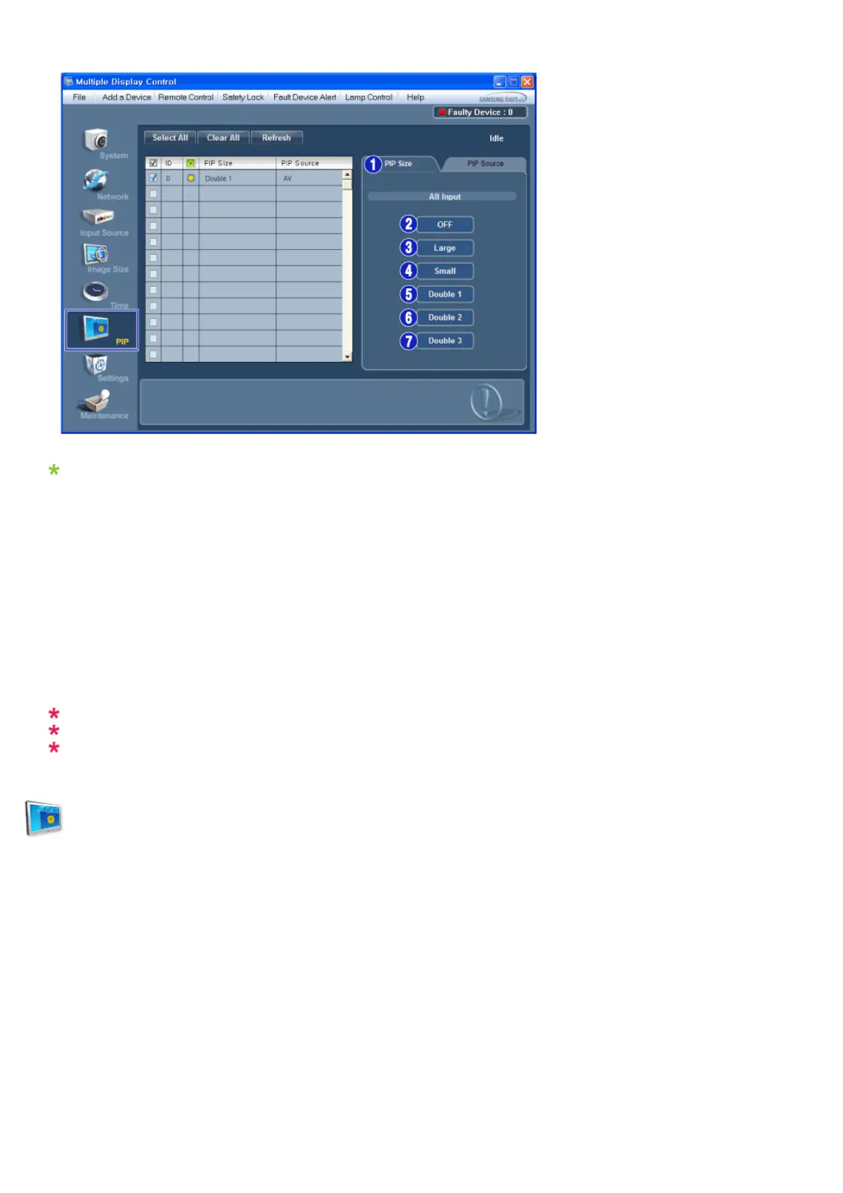 - Shows the current PIP Size of the display in use.