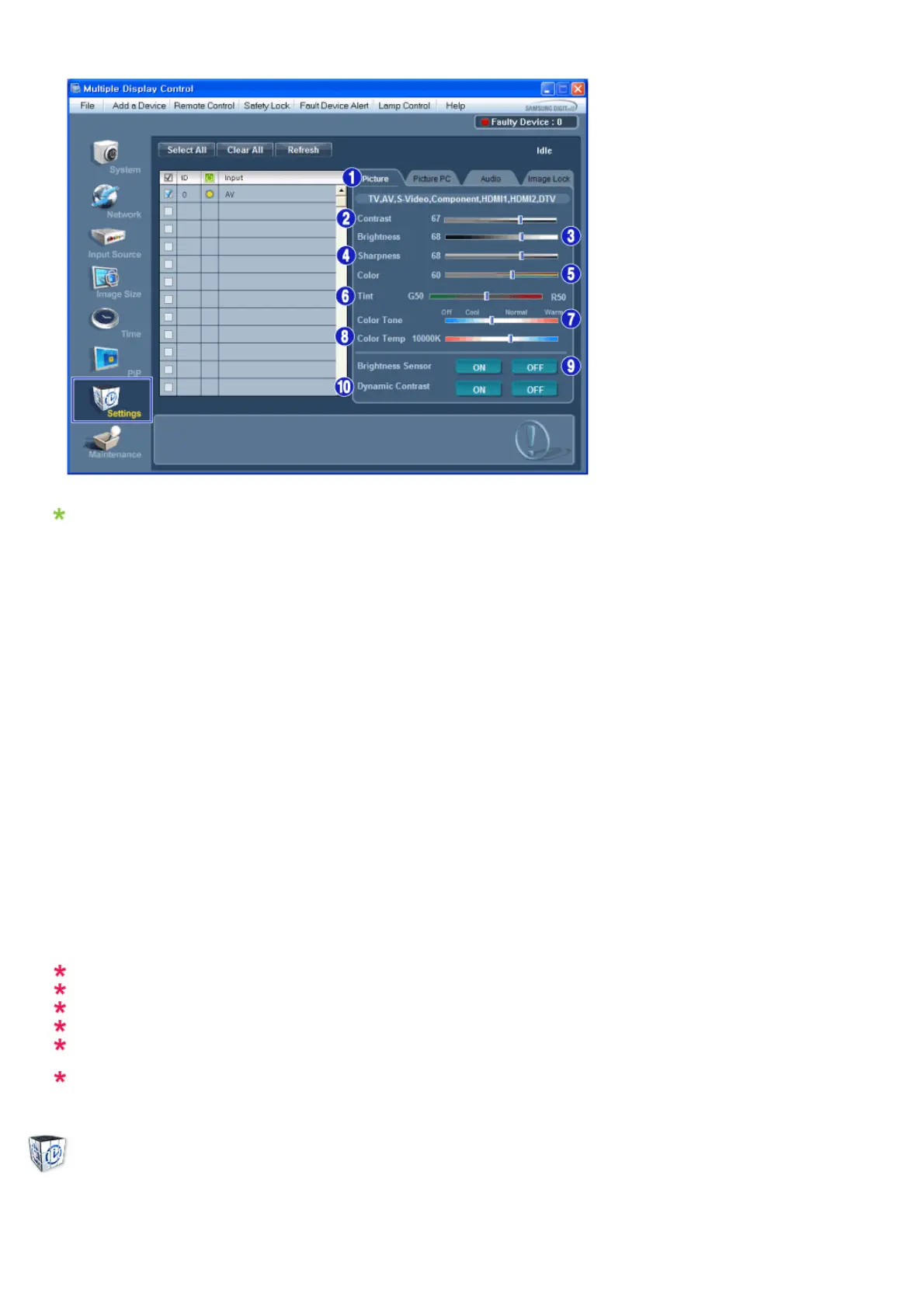 Basic information required to adjust the Picture is displayed in the main menu. Settings for the selected