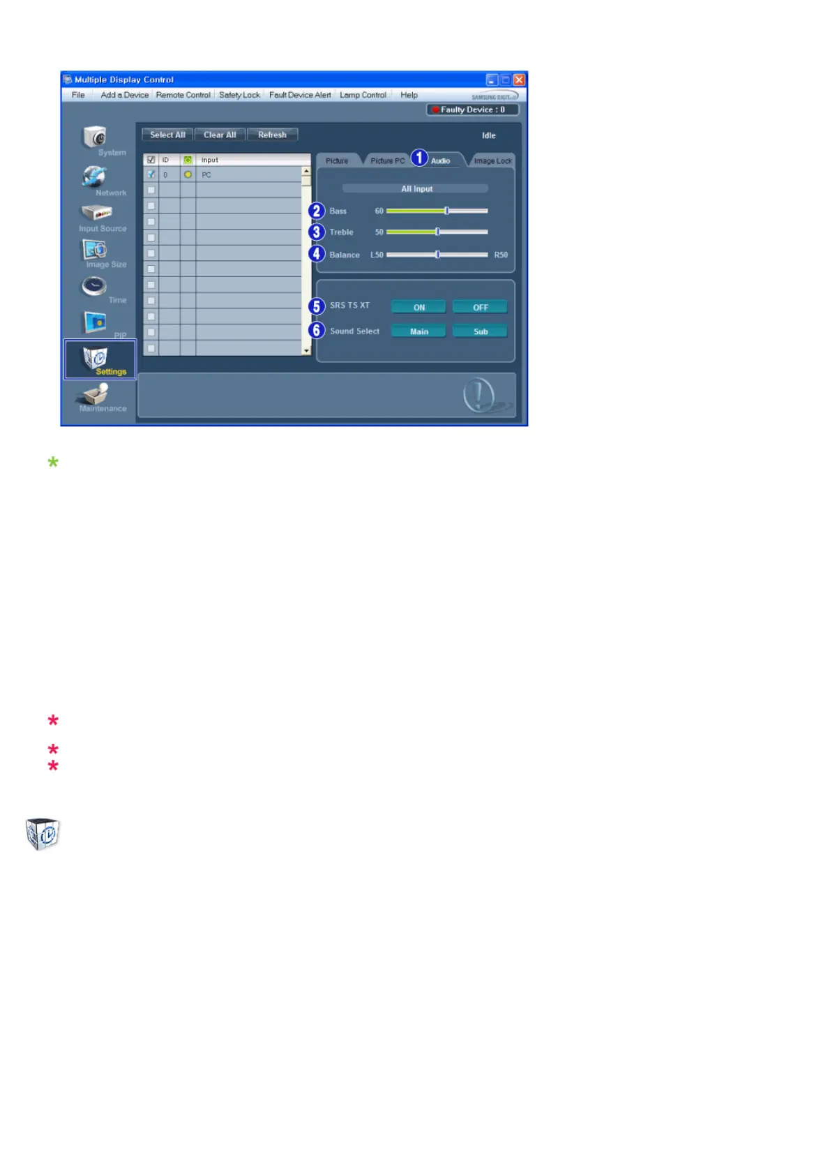 - Controls audio settings for all input sources.