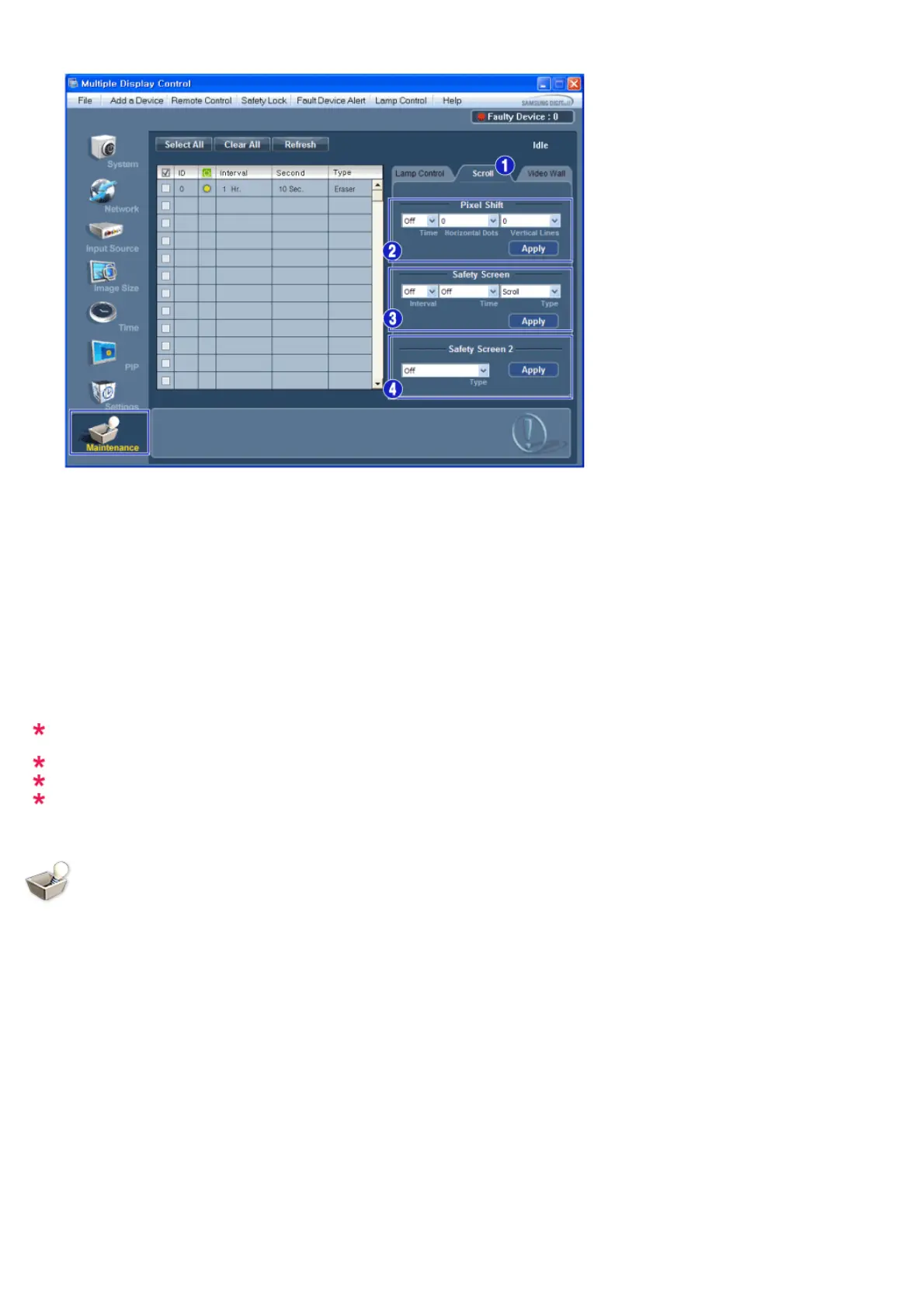 The Maintenance Control feature is available only for the displays whose power status is ON.