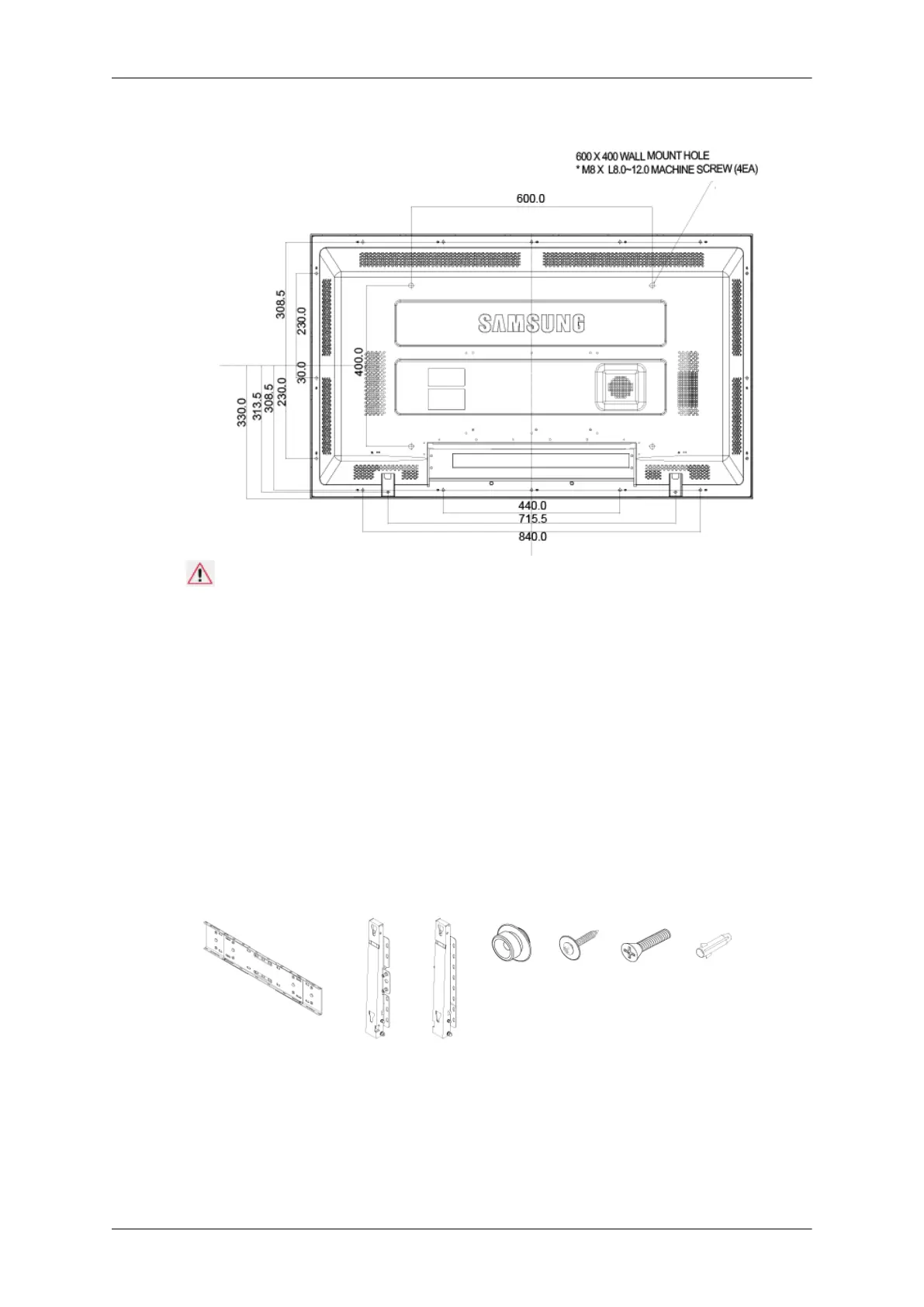 For securing the bracket on a wall, use only machine screws of 6 mm diameter and 8 to 12