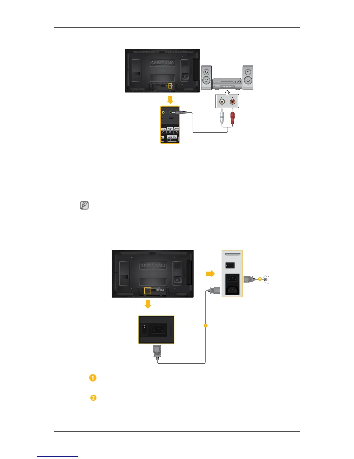 1. Connect a set of audio cables between the AUX L, R jacks on the AUDIO SYS-