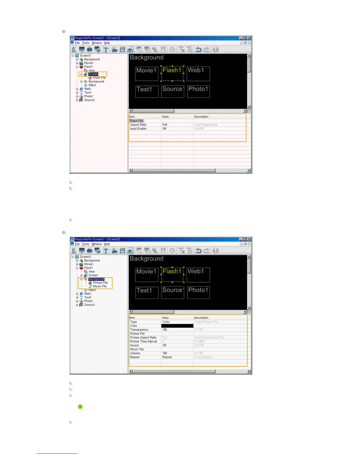 Type: Sets the background type (Color, Picture File) for the Flash area.
