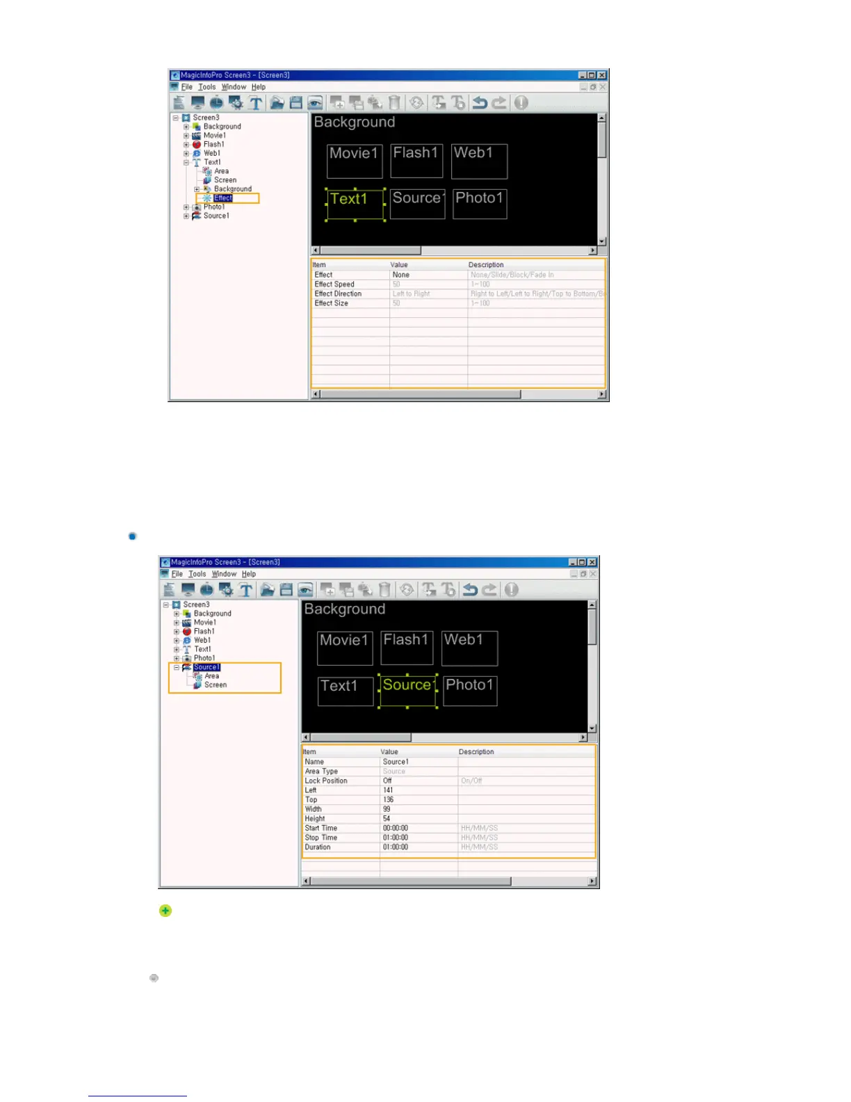 Effect: Selects the type of effect to be applied when the Text area is created.
