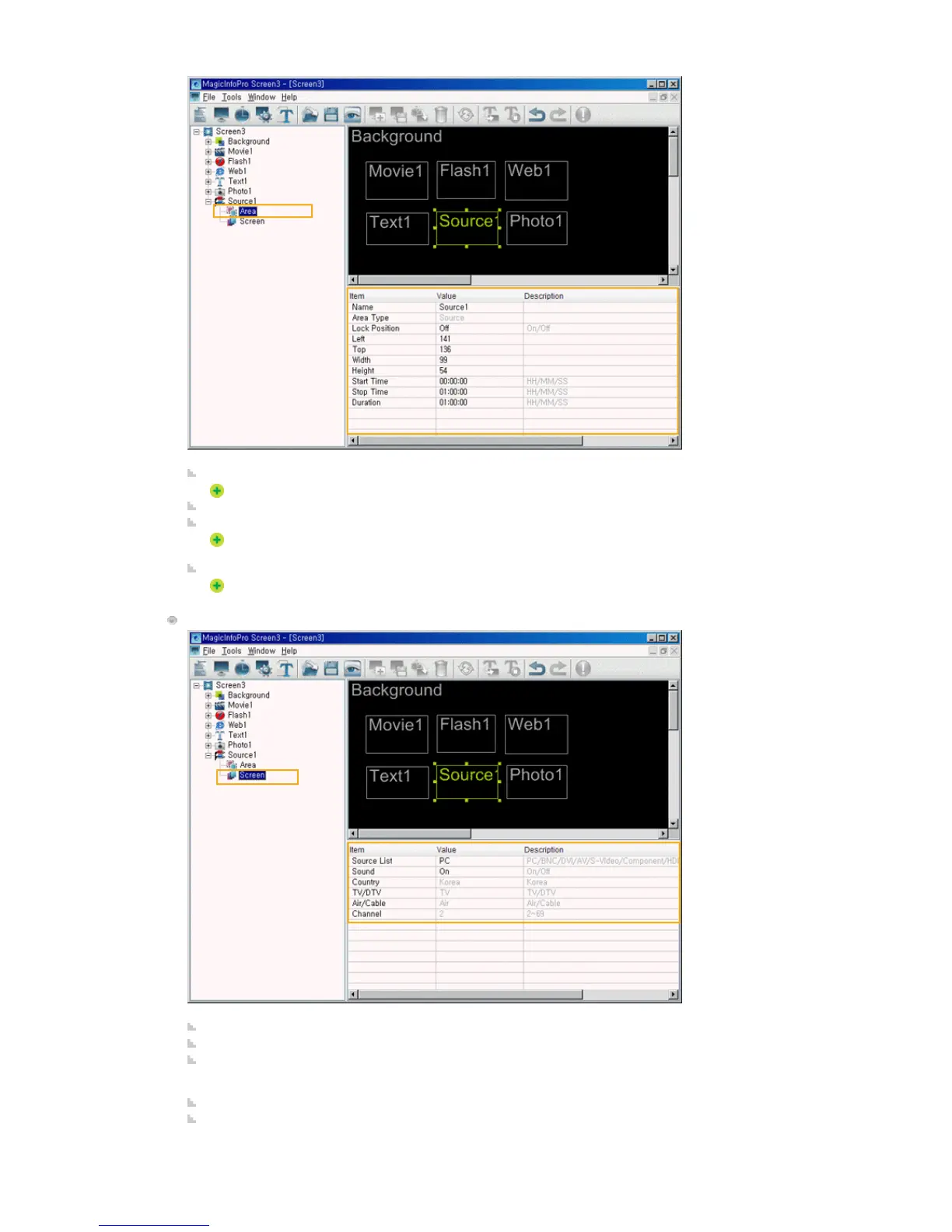 Sound: Turns the sound for the source you want to play in the Source area on or off.